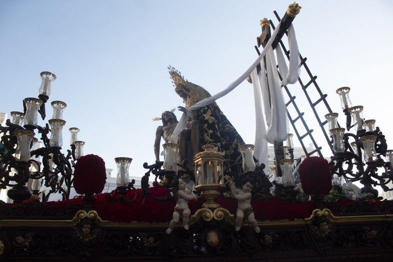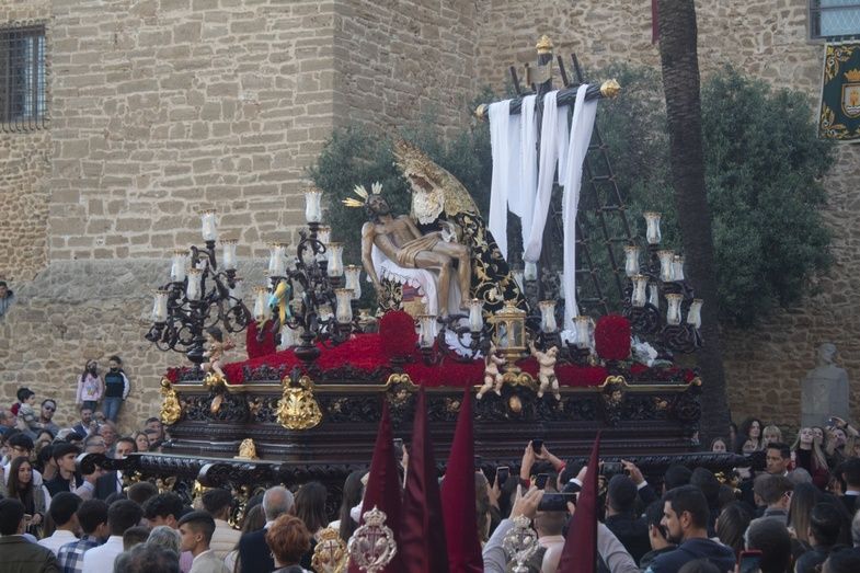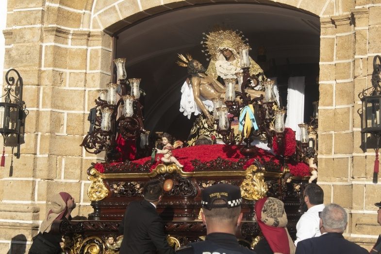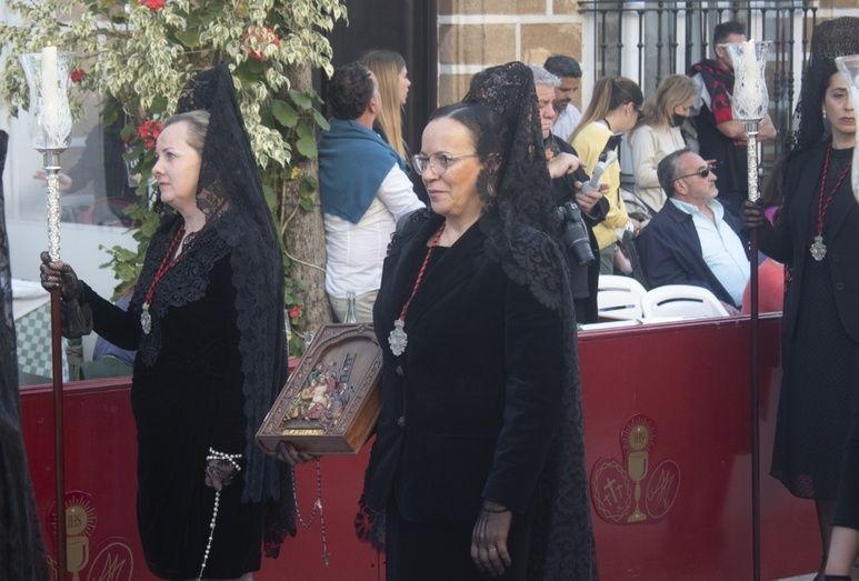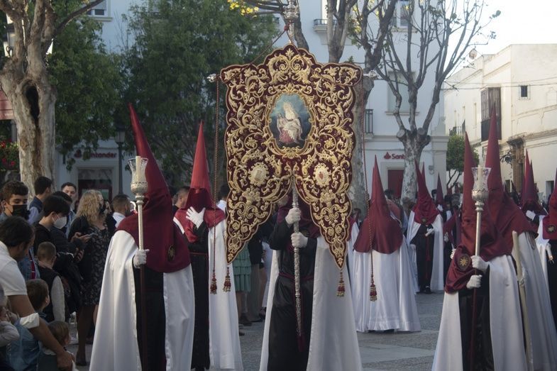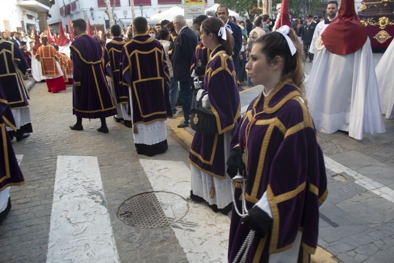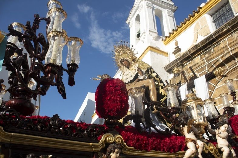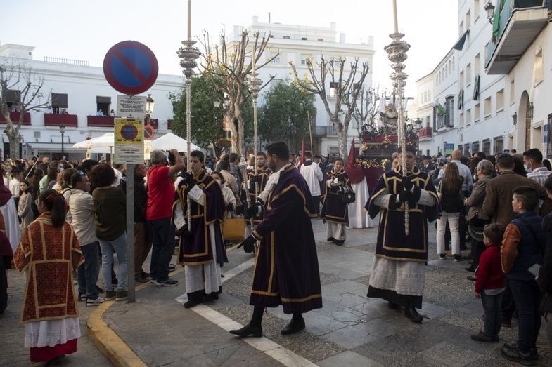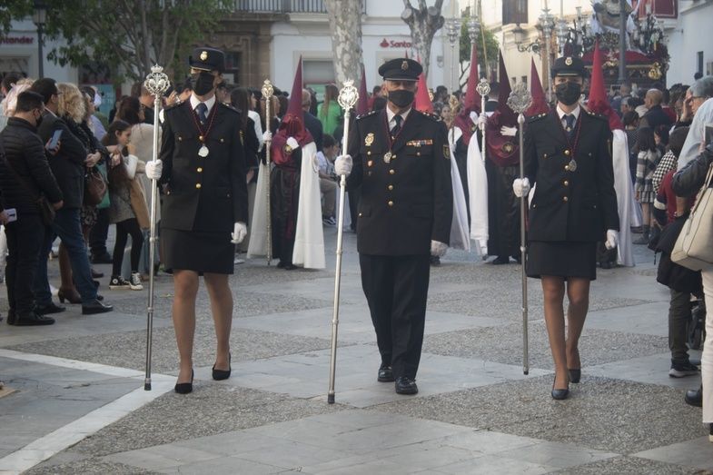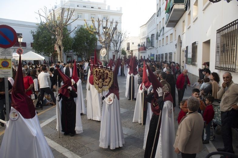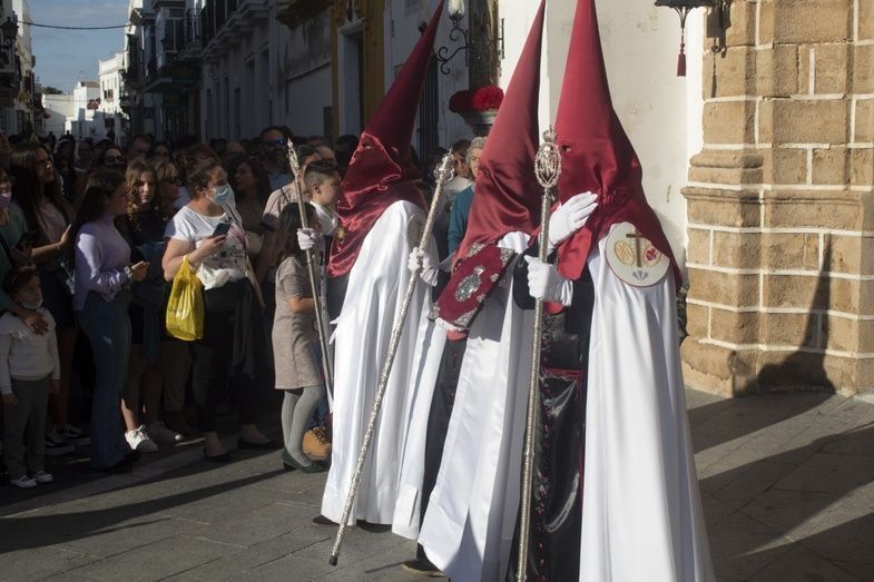La jornada del Jueves Santo, de gran devoción en la villa de Rota, fue plena desde el momento de su salida con un ambiente por las calles que ya hacía presagiar que Nuestra Señora de los Dolores y el Santísimo Cristo de la Caridad no iban a estar solos en ningún momento de su estación de penitencia. Una salida procesional que se ha podido completar gracias a unas condiciones meteorológicas que han acompañado todo el día.