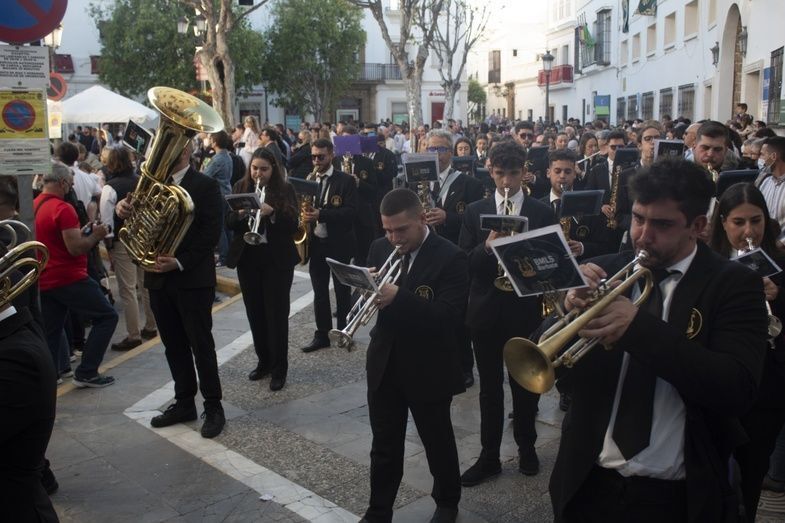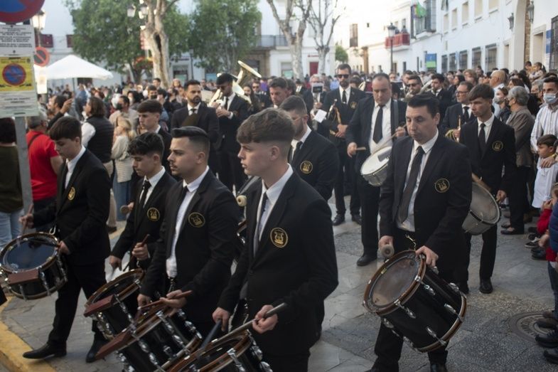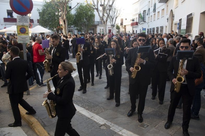 Hasta su recogida, muy puntual, con una Cruz de Guía llegaba de nuevo a una plaza de Andalucía llena de público sobre las 23.15 horas, el paso de la virgen de Los Dolores se lució los últimos minutos con tranquilidad, disfrutando con los sones interpretados por la banda de música de la Hermandad de la Salud, de Barbate, que este año acompañó por primera vez al paso del Jueves Santo.