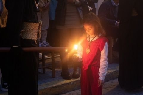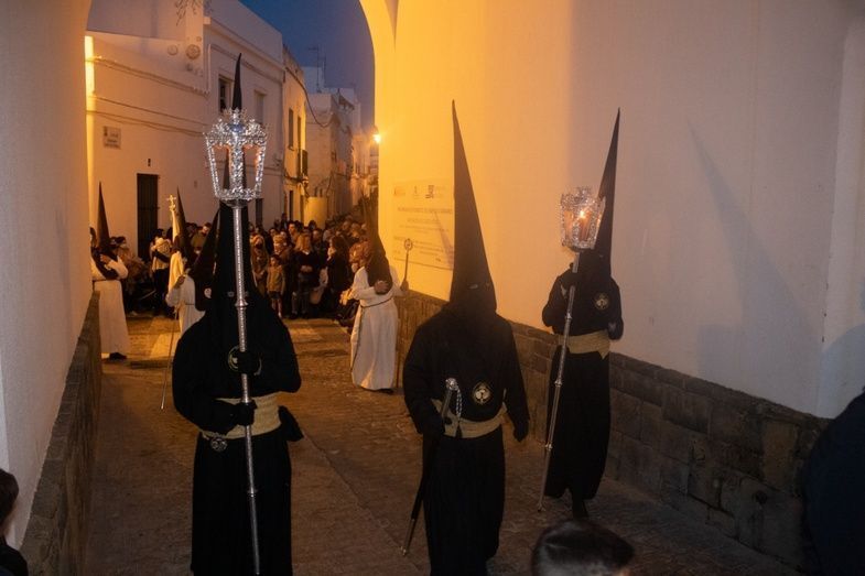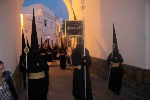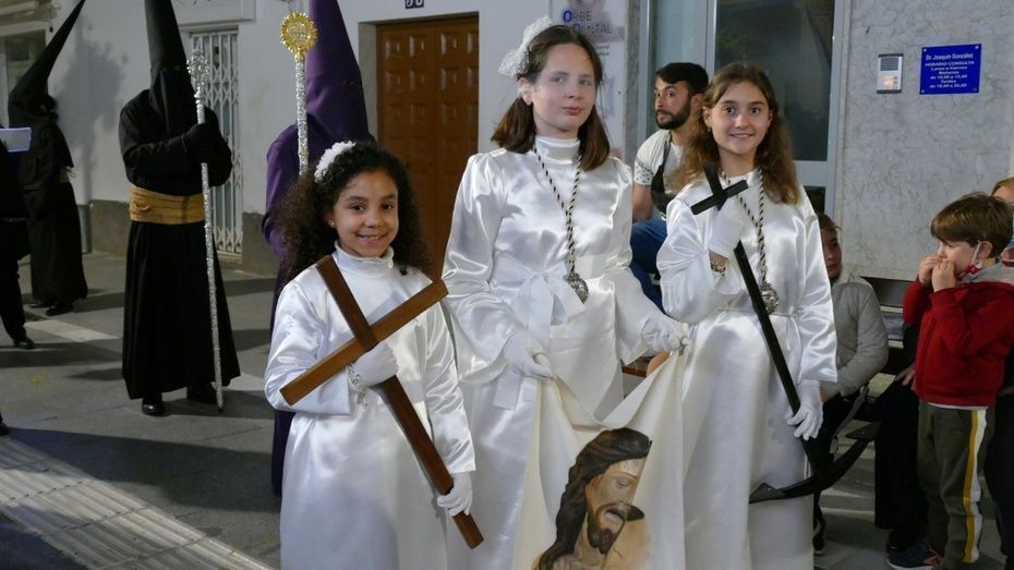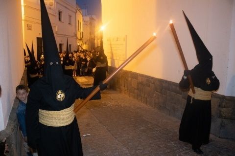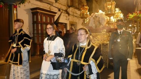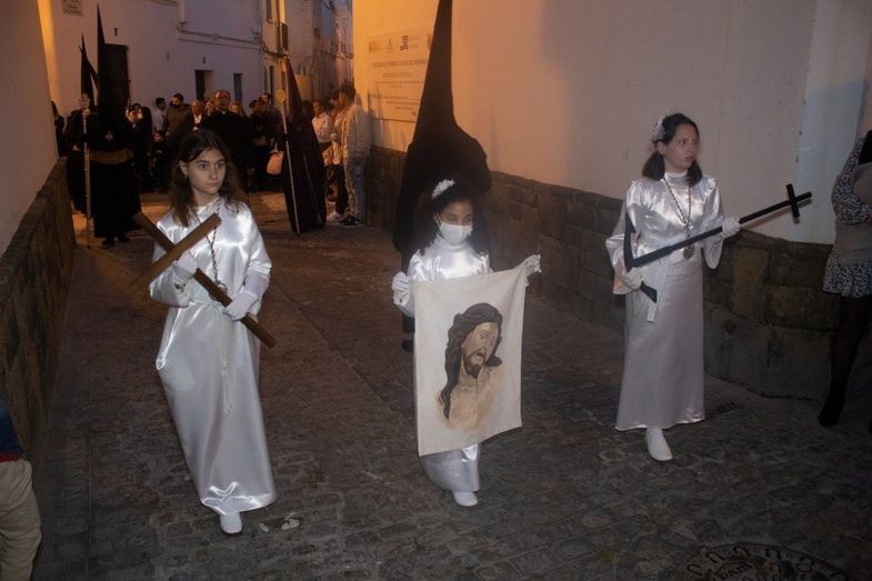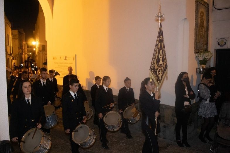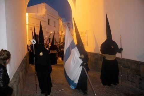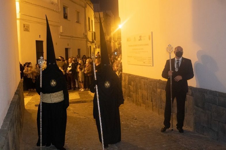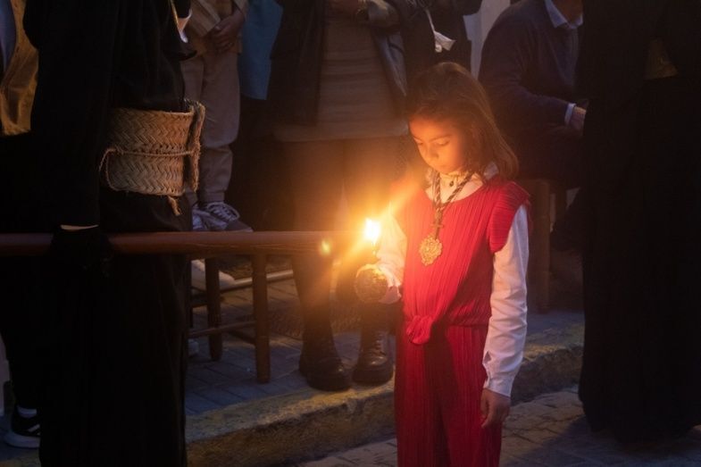 Con el Cristo yacente en la calle desde las ocho de la tarde y Soledad de María Santísima minutos después, esta cofradía se lució como le gusta  hacer, por rincones especialmente emblemáticos como el Arco de la Villa, pero fueron muchos otros puntos del itinerario los que aprovecharon para mostrar su presencia en la calle con un cortejo formado por unos 200 hermanos en total, sumando penitentes, costaleros y mujeres de mantilla. Especial relevancia tiene en esta hermandad  la presencia femenina no solo por ir en el cortejo luciendo la mantilla española, de luto, sino como parte de los hermanos que visten la túnica o como costaleras del paso de Cristo. Un año más, como decía en los días previos el hermano mayor, Juan Antonio Martín, las mujeres destacan en esta hermandad junto a los niños que forman la cantera de la que debe nutrirse para continuar su labor en el futuro.
