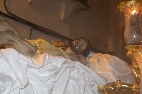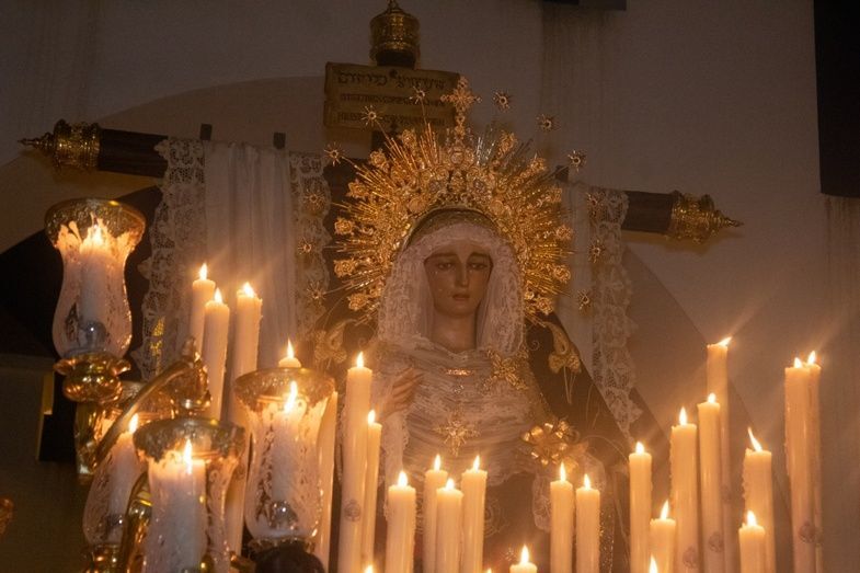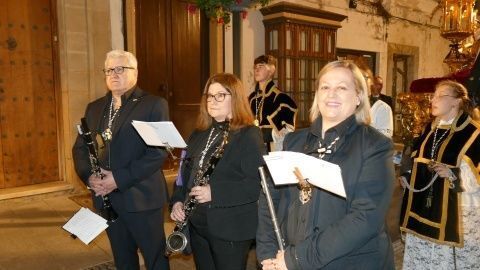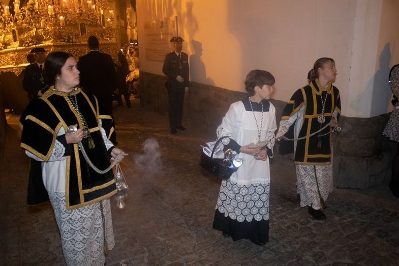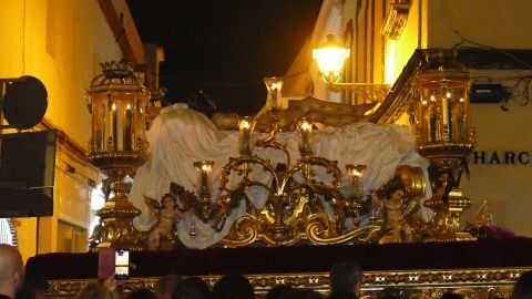 [Img #165371]Los estrenos que cada año lucen los titulares, y que en el caso del Santo Entierro, como se pudo ver, era el sudario de Jesús, de oro y con el interior forrado en seda salvaje, además del sudario de la cruz de la virgen que también estrenaba el  juego de puños y tocado  de encaje de aplicación de Bruselas y el pañuelo, siendo las tres piezas del siglo XIX, permiten hacerse una idea del esfuerzo de las hermandades por que sus titulares estén espléndidos en sus salidas procesionales. La Soledad, como siempre, lo estuvo, y lució con los acordes que la Banda Musical Gastoreña le dedica desde el año 2000, especialmente, a su paso por rincones más oscuros y estrechos donde queda retratado el trabajo de costaleros y capataces.