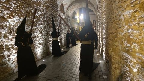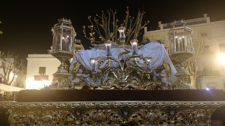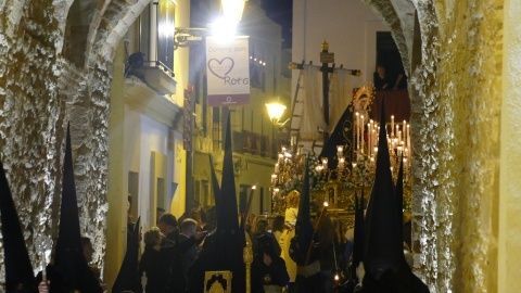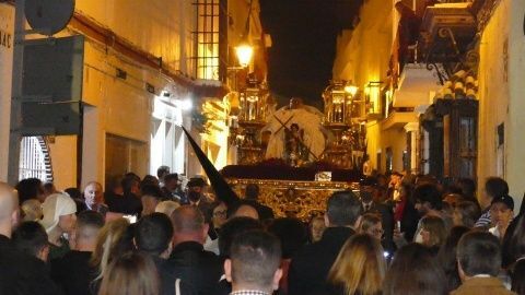 [Img #165407]La Hermandad del Santo Entierro, que comparte jornada con la Hermandad de la Veracruz, con quien se encuentra en un punto del itinerario, sigue apostando por poder procesionar el Sábado Santo y con ello, evitar esta coincidencia y que cada cofradía tenga su día especial, pero de momento, y aunque llevan ya años solicitándolo, no ha sido posible. Confían en que en 2023 pueda llevarse a cabo. De esta forma, se evitaría contratiempos como el de la pasada estación de penitencia donde pese a que ambas hermandades se coordinan para no interrumpirse mutuamente, finalmente, siempre hay una que debe esperar a la otra. En este caso, fue especialmente pesado para los ciudadanos e incluso para los miembros del cortejo tener que esperar casi una hora desde la esquina de Charco con Isaac Peral hasta llegar al Arco de la Villa. Los del Santo Entierro tuvieron que hacer tiempo parados en plena calle hasta que Veracruz terminó de pasar por la plaza de Andalucía porque llegaron antes de tiempo. De hecho, eran las once de la noche y ya estaban en el tramo final cuando su recogida no le tocaba hasta la una de la madrugada. Por lo tanto, para un recorrido tan corto tardaron casi dos horas, lo que llegó a desesperar al público que estaba en plaza de España que se vio recompensado por ver pasar los dos pasos, especialmente el de la Soledad, por debajo del Arco de la Villa; el único que lo hace en toda la Semana Santa de Rota y que es un trabajo de equilibrio para los costaleros.