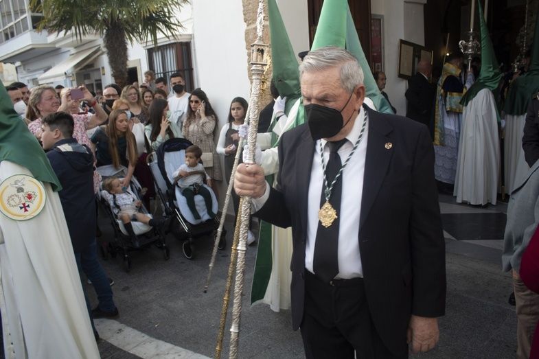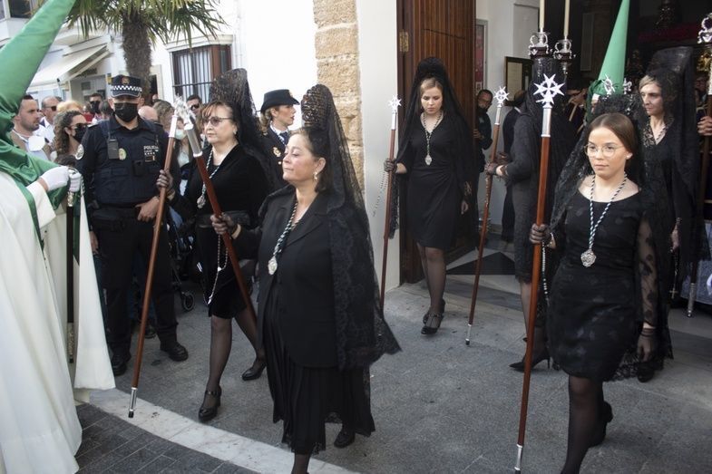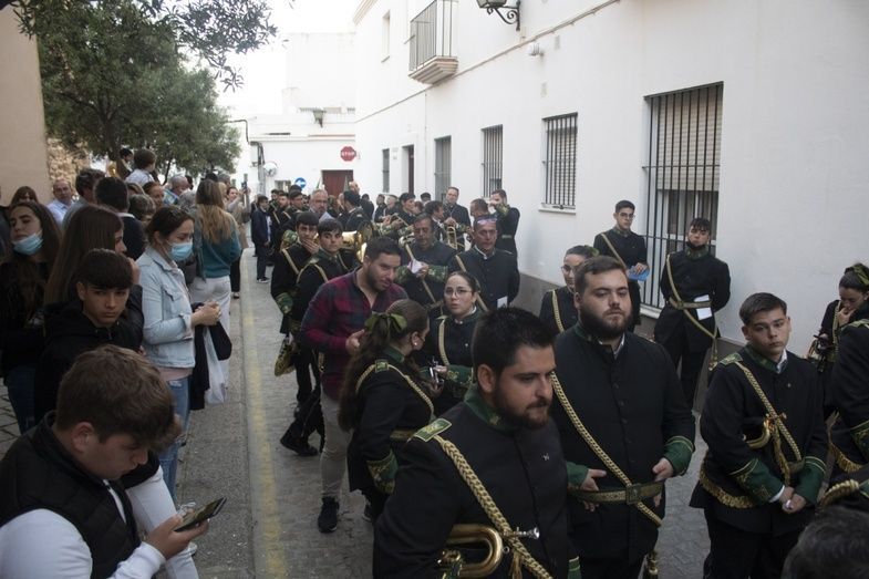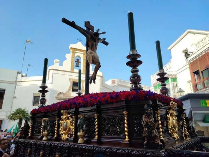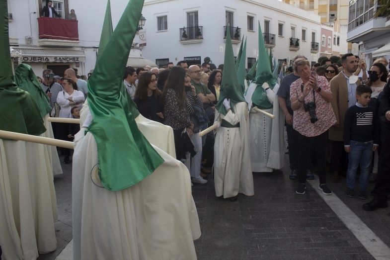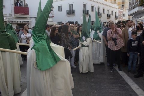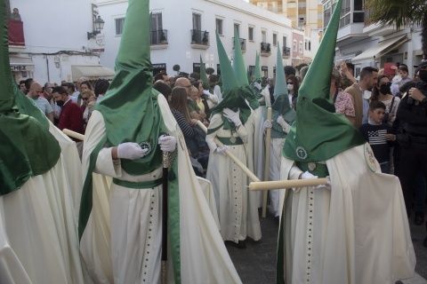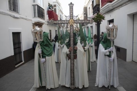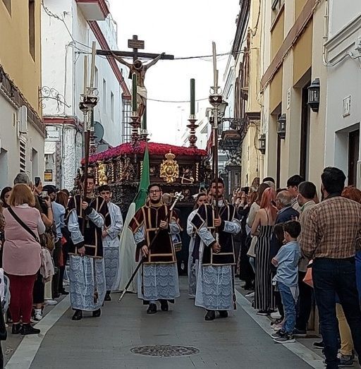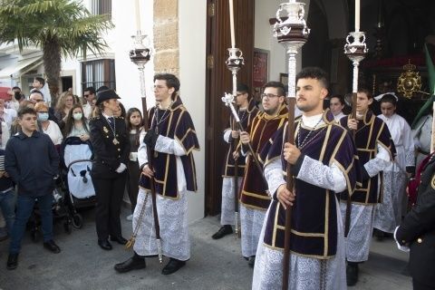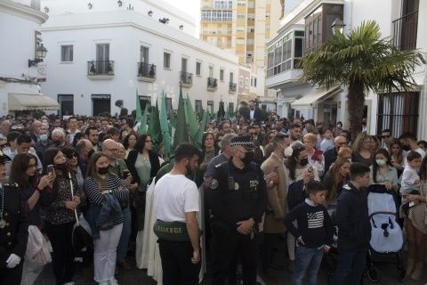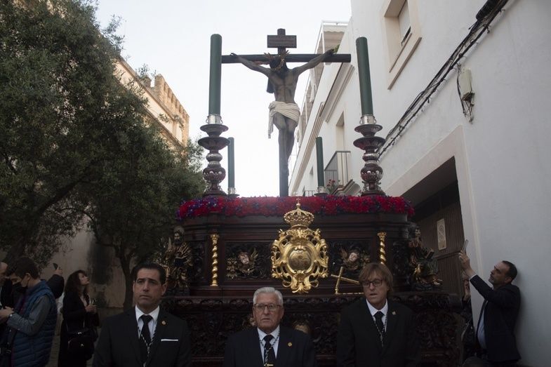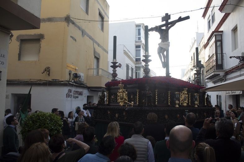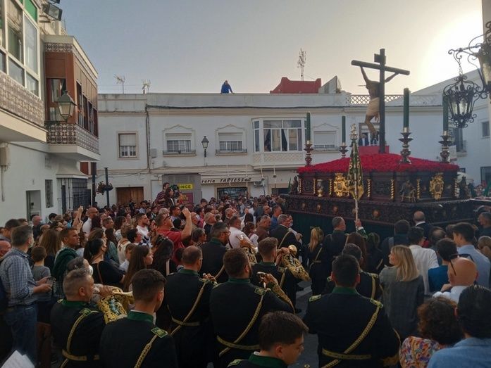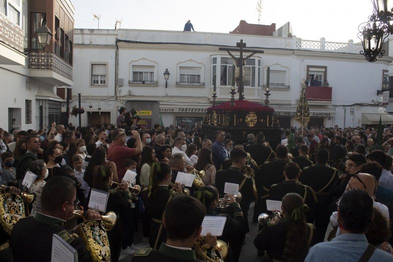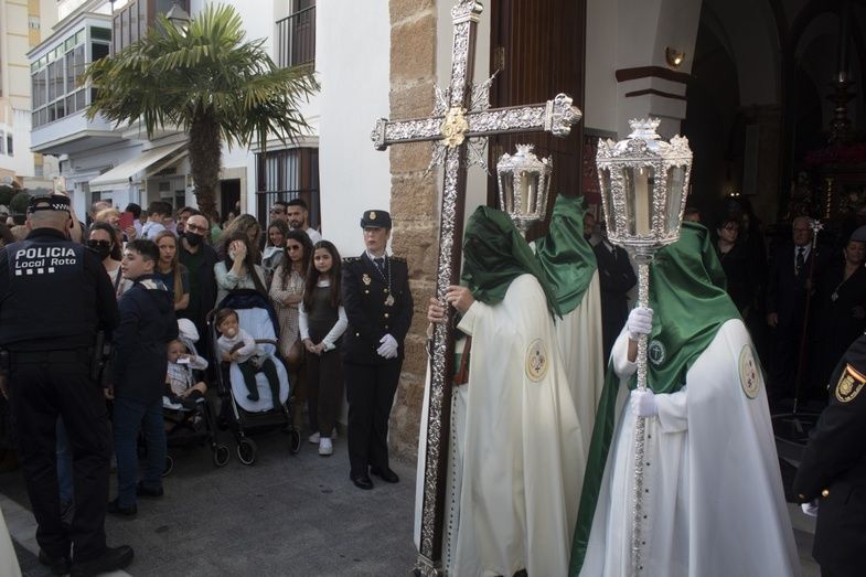 Puntual a las siete y media de la tarde salía por las puertas de la capilla de San Roque la Cruz de Guía de la Hermandad de la Veracruz que por tercera vez, procesionaba en esta Semana Santa. Es la única que lo hace y hay que reconocer el esfuerzo que conlleva preparar tres cortejos y sus titulares en tan pocos días, un trabajo que, en parte, se ve recompensado por el arropo que sienten en la calle ya que el Viernes Santo es uno de los días festivos en los que prácticamente todo el pueblo de Rota sale para disfrutar de las procesiones.