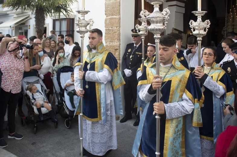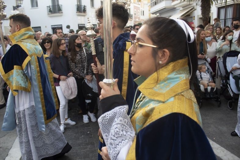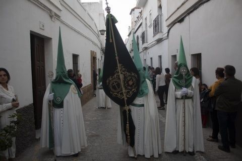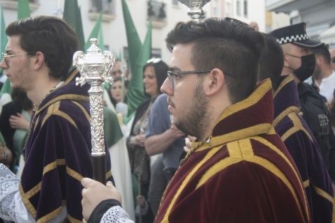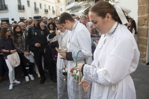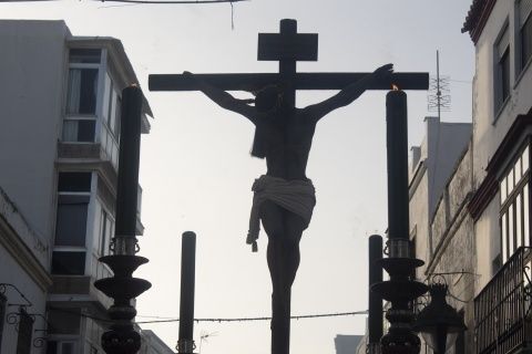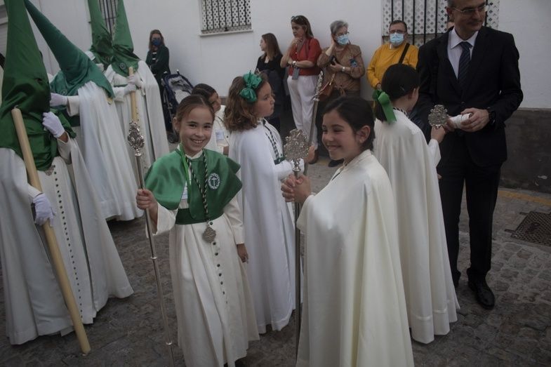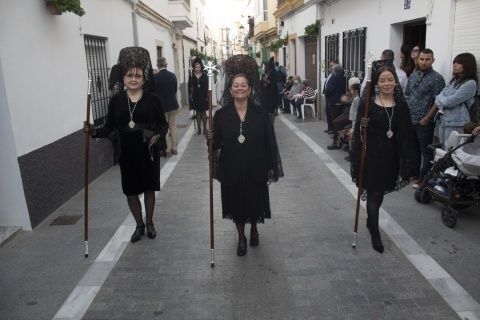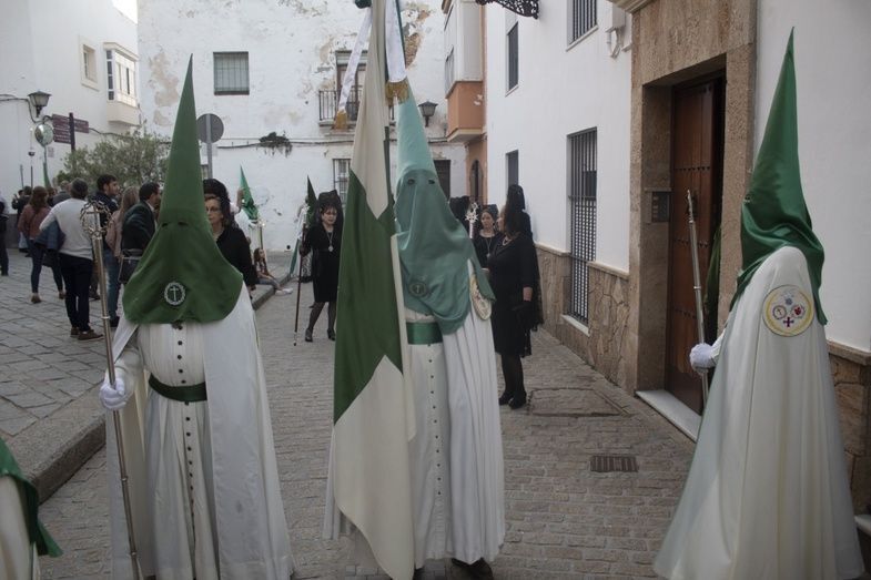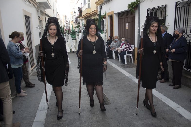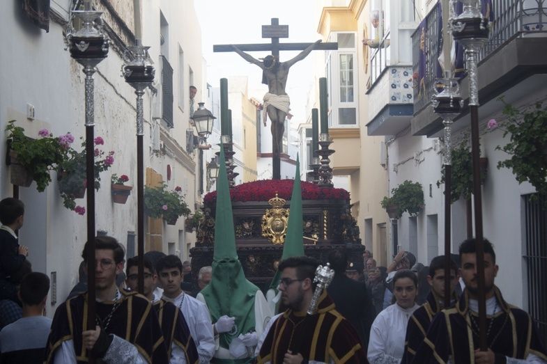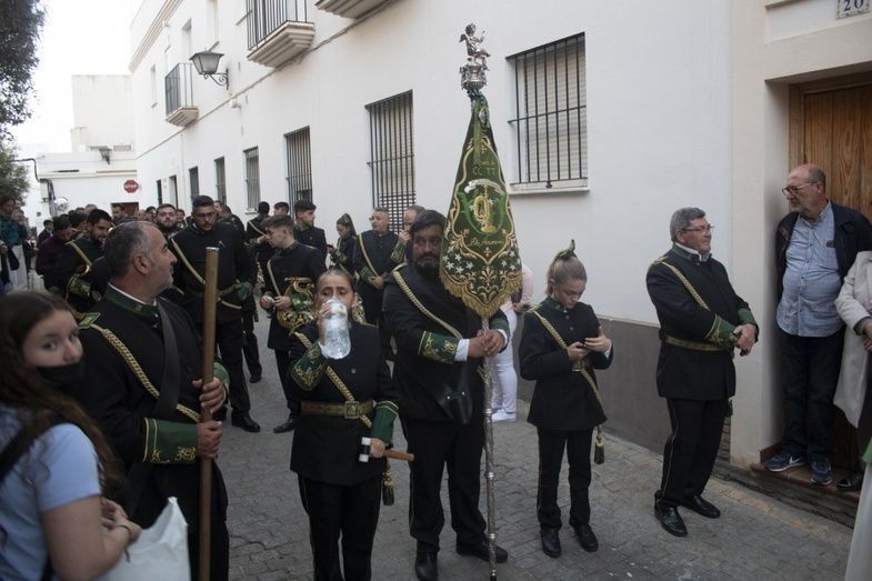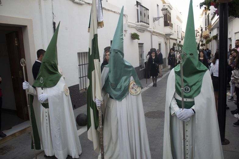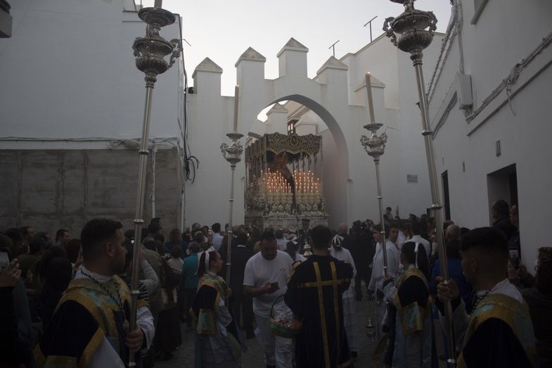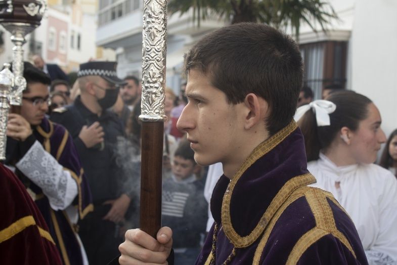Puntual a las siete y media de la tarde salía por las puertas de la capilla de San Roque la Cruz de Guía de la Hermandad de la Veracruz que por tercera vez, procesionaba en esta Semana Santa. Es la única que lo hace y hay que reconocer el esfuerzo que conlleva preparar tres cortejos y sus titulares en tan pocos días, un trabajo que, en parte, se ve recompensado por el arropo que sienten en la calle ya que el Viernes Santo es uno de los días festivos en los que prácticamente todo el pueblo de Rota sale para disfrutar de las procesiones.