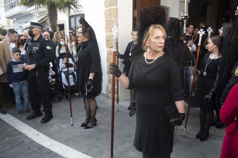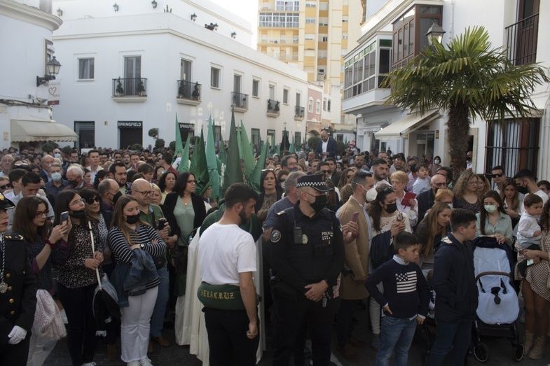 La zona entendida como carrera oficial en Rota, que va desde plaza Andalucía hasta Bartolomé Pérez, estuvo a rebosar de gente, pero también otras calles más pequeñas, porque ayer, en la recta final de esta Semana Santa, la afluencia de público fue notable en todos los aspectos. Es más, teniendo en cuenta que también la Hermandad del Santo Entierro procesiona el Viernes Santo, el ambiente es mayor y aunque todavía en las procesiones se lleva el aire de penitencia y luto, previo a la resurrección, entre el público todo era alegría y satisfacción por haber podido disfrutar de unos días que eran muy esperados tras la pandemia. En esta Semana Santa, aunque la lluvia estropeó las jornadas del lunes y martes, y en el caso de la Veracruz no pudo lucirse con Nuestro Padre Jesús Cautivo, ayer sí lo hizo, y con creces, en un Viernes Santo en el que se vio una talla muy valorada como la del Cristo de la Veracruz y una virgen como las Angustias que también despierta fervor entre los cofrades y que tuvo momentos espléndidos.