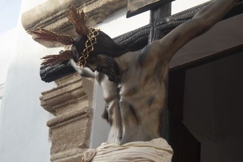 Ayer, en la tarde calurosa y la noche de temperaturas agradables que se vivió, el Cristo de la Veracruz y María Santísima de las Angustias fueron admirados con fervor, siendo la talla de Jesús muerto en la cruz una de las más antiguas de las que procesiona en la localidad, datando de 1726, realizada por Diego Roldán Serrallonga.
