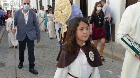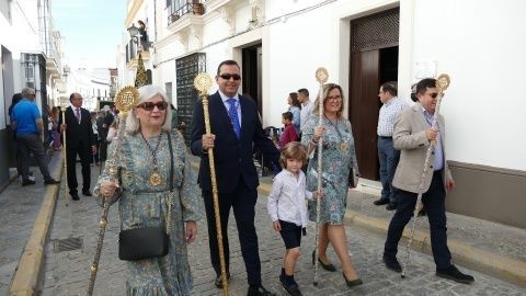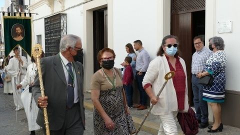 Desde que saliera a las 11 de la mañana de la parroquia de Nuestra Señora del Carmen, el cortejo ya notó que el calor iba a ser protagonista de todo el recorrido llegando en algunos puntos a ser insoportable por las altas temperaturas. Eso ha hecho que muchos ciudadanos salieran desde primera hora a arropar a Jesús en esta salida que simboliza la parte más importante de la fe católica y la que cierra la Semana Santa con el mensaje de que tras la semana de pasión y muerte, Jesús resucitó. Por eso, el ambiente hoy era de alegría, se notaba en el cortejo, que ya no lleva penitentes sino hermanos vestidos de calle, entre ellos, representantes de las hermandades, que no han estado todas, miembros de la Hermandad del Amor y niños, muchos niños y jóvenes que representan la cantera cofrade y que con este calor lo han pasado en algunos momentos mal, buscando en cada parada un resquicio de sombra en el que poder refugiarse. Ha habido zonas en las que ha sido imposible, por eso, hidratarse ha sido fundamental para evitar percances.