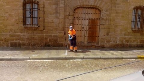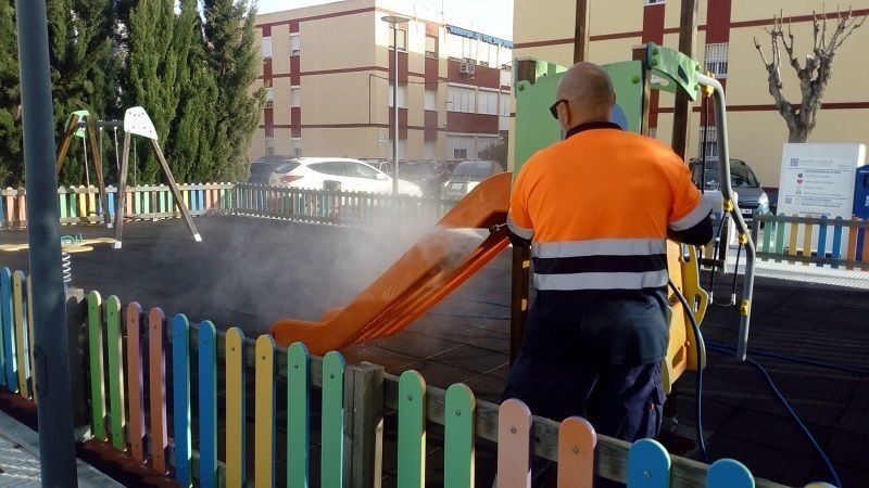 Para ello, desde la delegación de Limpieza se está procediendo a una limpieza a fondo usando el hidrolimpiador, la nueva máquina decapadora, además, de labores de barrido y baldeo.