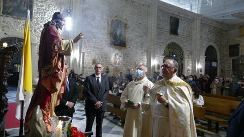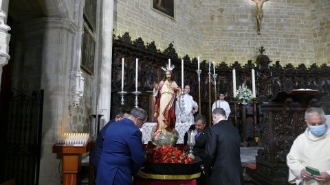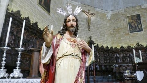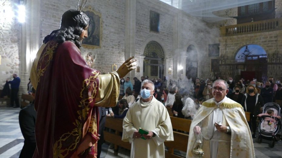 Según las crónicas, la villa de Rota se consagró al Corazón de Jesús hace unos 82 años. A la vuelta a la parroquia, la imagen del Sagrado Corazón ha vuelto al altar mayor.