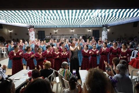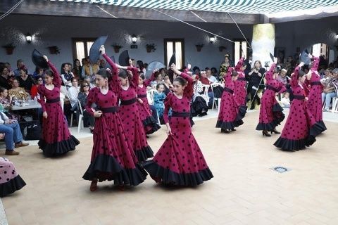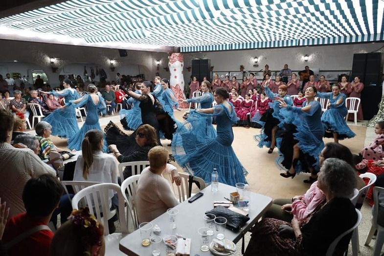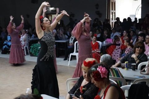 También los mayores supieron pasarlo bien en la jornada del jueves teniendo en cuenta que tienen una programación de actividades exclusivamente pensadas para ellos y que además de la degustación de guisos y platos todos los mediodías a las 14.30 horas, disfrutaron de la puesta en escena de Ofelia Márquez con sus cuadros flamencos que llenaron la caseta de arte puro tanto con las alumnas más jovencitas como con las más veteranas.