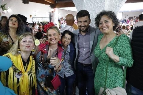 Rota vive plenamente ya su Feria de Primavera y ayer se pudo comprobar también en el interior de muchas casetas como la del pabellón municipal que estuvo desde la hora del almuerzo lleno de mujeres y hombres debido a la comida que desde la delegación de Igualdad se organizó con motivo del día dedicado a la mujer en la feria. Fueron muchas las personas que acudieron a esta cita que continuó con un sorteo de un mantón de manila, la degustación de dulces y café y la actuación de la roteña Rocío Ruiz. Antes, se llevó a cabo el acto de homenaje a las mujeres presidentas de peñas de casetas para poner en valor el trabajo que hacen al frente de estas entidades.