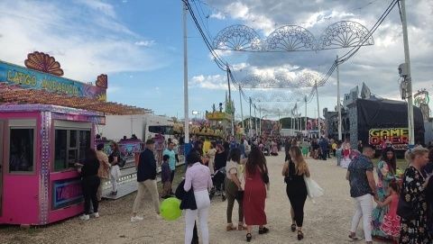 La jornada de ayer jueves fue de las tres celebradas. la más ambientada con diferencia, con un Real que lució mucho más concurrido que el día anterior y un parque de atracciones lleno hasta arriba incluso con las pocas gotas de lluvia que cayeron por la tarde.