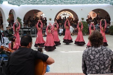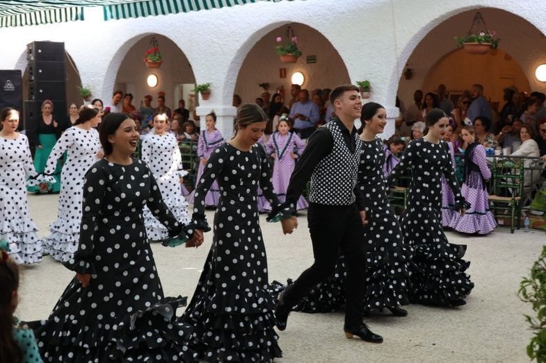 No fue lo único porque los bailes por sevillanas y las actuaciones de flamenco también estuvieron muy presentes en un día en el que además, las temperaturas acompañaron de manera notable. Laura Pirri y sus alumnas, como ya lo hiciera Ofelia Márquez o Rocío Sánchez con sus cuadros flamencos en estos días, han sido las encargadas de poner arte sobre los escenarios de varias casetas, entre ellas, el pabellón municipal por donde han pasado decenas de bailaoras y bailaores de todas las edades, desde las pequeñas de 4 años hasta las veteranas que sobrepasan los 60, porque para bailar, solo hay que tener ganas y dejarse llevar. En este caso además, aprenden de manos de profesionales que llenan de color la Feria de Primavera de Rota actuando en aquellas casetas que las requieren para animar el ambiente.