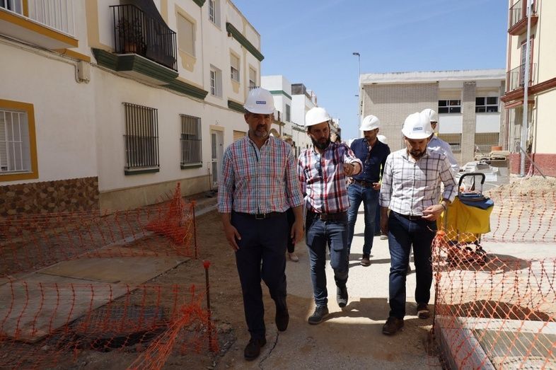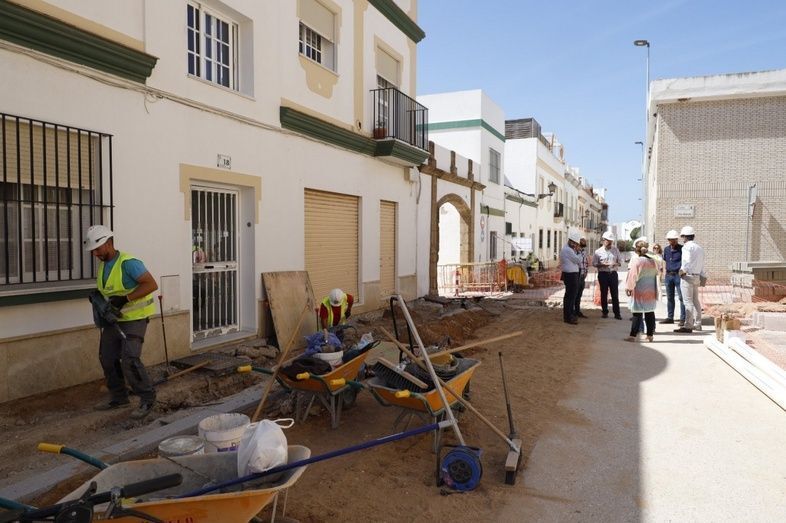 Las obras de la calle Lope de Vega-Buenavista continúan y avanzan a buen ritmo según ha manifestado esta mañana el alcalde de Rota, Javier Ruiz, que ha girado visita a esta zona para comprobar in situ esta actuación de remodelación de una vía en la que se ha actuado en varios aspectos, no solo de accesibilidad sino en saneamiento.