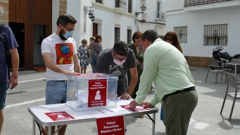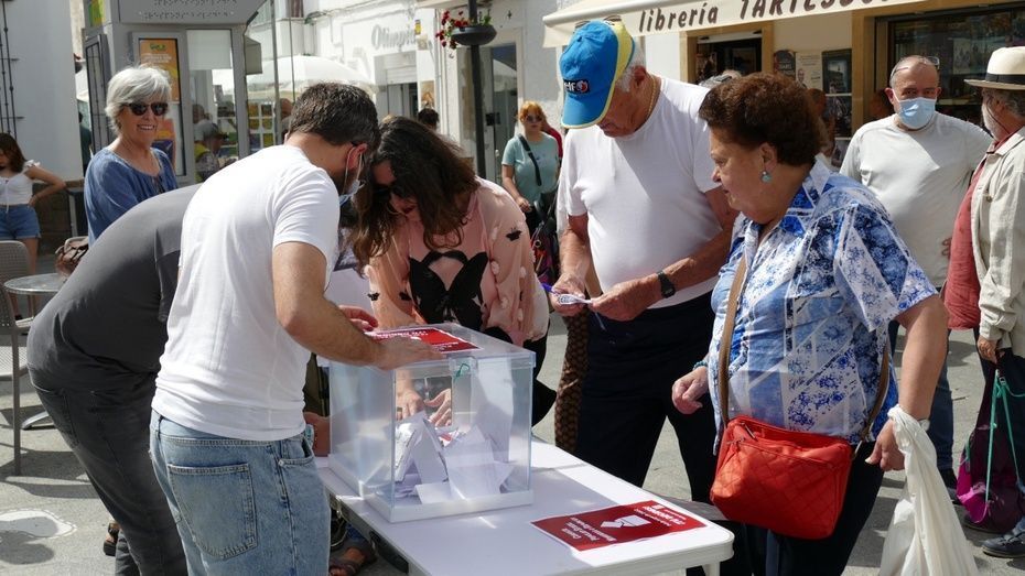 La misma urna que se ha colocado en la plaza de San Roque hoy, por la que se han acercado personas interesadas en dejar constancia de su opinión, se ha repetido en 723 mesas más repartidas por la geografía nacional, y 15 de ellas en el extranjero.