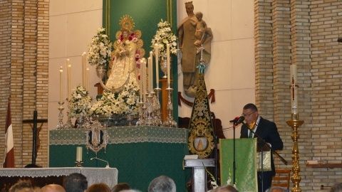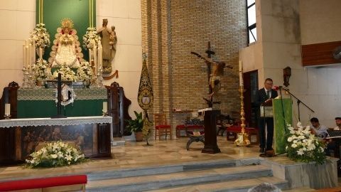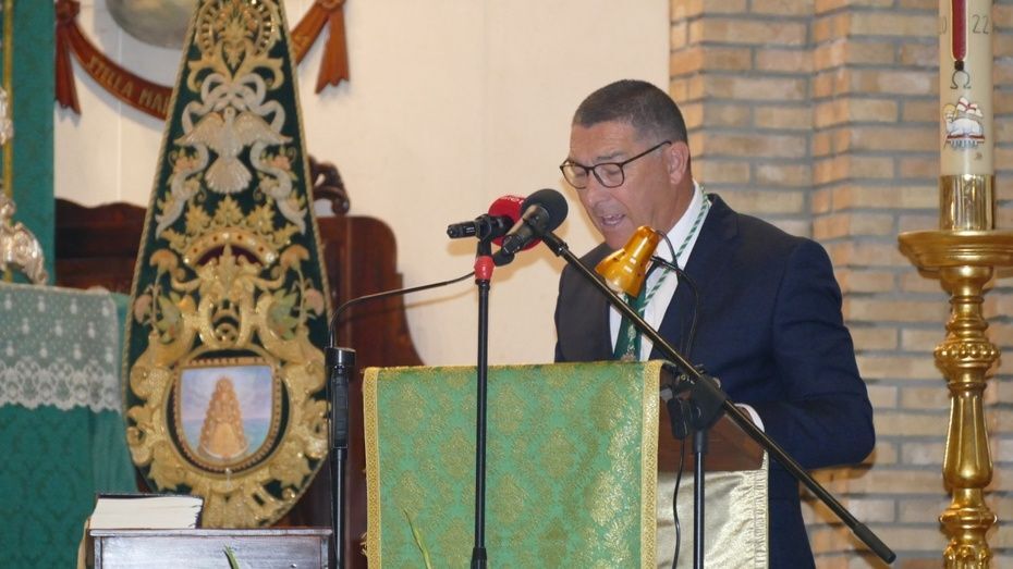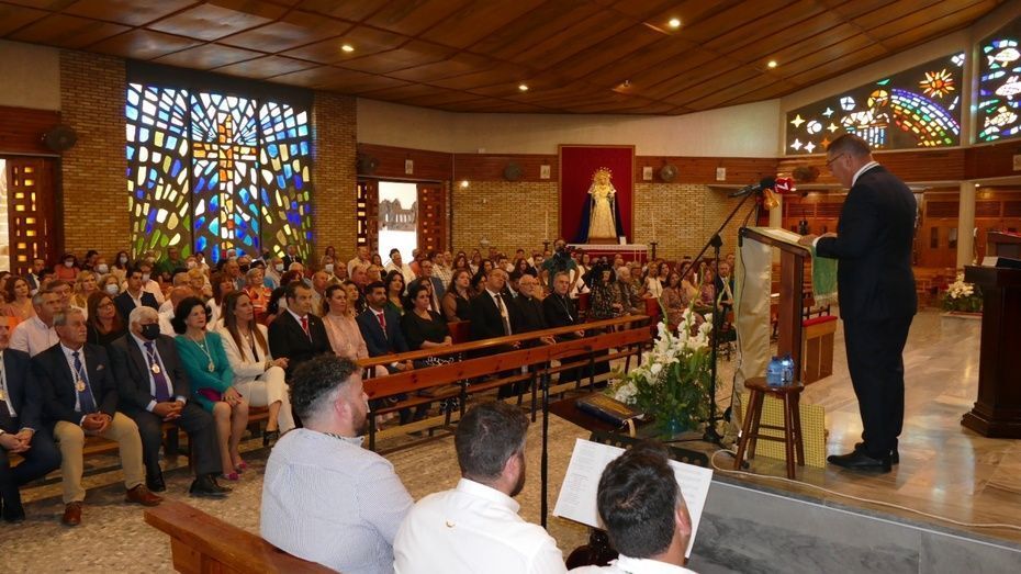 [Img #168367]Manuel Laynez de los Santos no es un rociero al uso. No hace el camino, no tiene caballo, no lleva zahones, ni viene de familia rociera. A él, su devoción hacia Nuestra Señora del Rocío le llegó hace 15 años y fue una llamada tan potente que asegura que seguirla  le devolvió la vida. Por eso, su pregón ha estado plagado de alusiones al sentimiento personal que cada rociero tiene y que no debe ser cuestionado por ajenos. Ser rociero es  un modo de vida que no se ciñe a 9 días  de romería. En su caso, decía ante una parroquia de Nuestra Señora del Carmen muy concurrida,  ser rociero es tener siempre presente en su día a día a la Blanca Paloma. Su Rocío está en sus actos y palabras porque la verdad del Rocío "ni se explica ni se ve, solo se siente", decía el pregonero. Y lleno de sentimiento ha estado el XLII Pregón que ha pronunciado tras dos años de espera por culpa de una pandemia que obligó a paralizar el mundo.