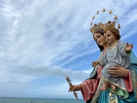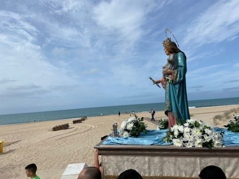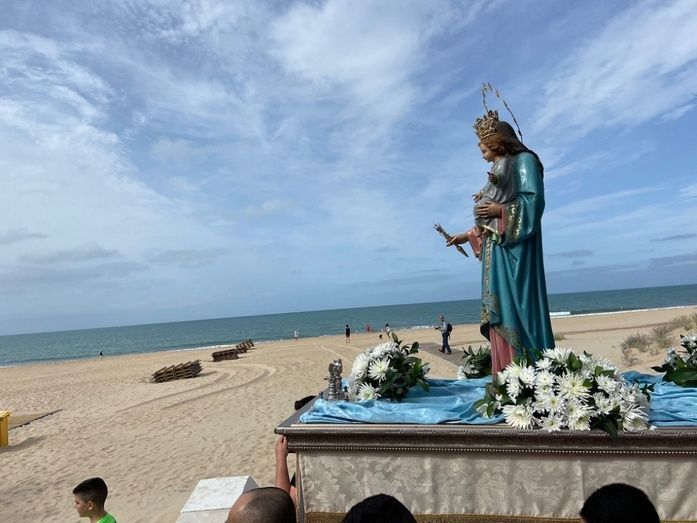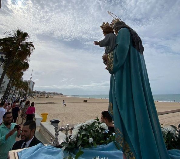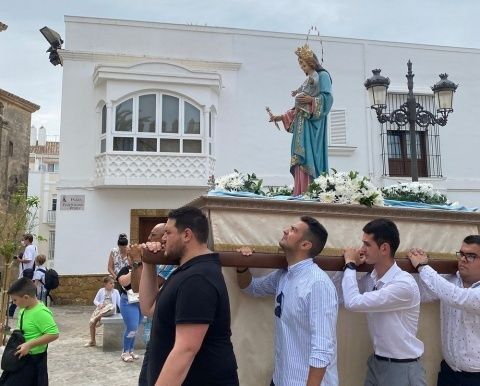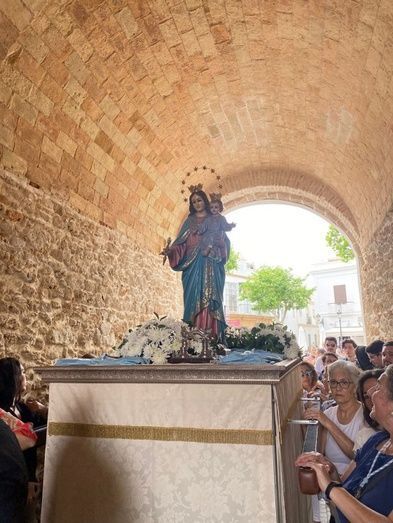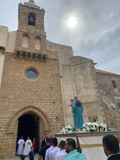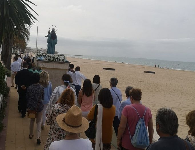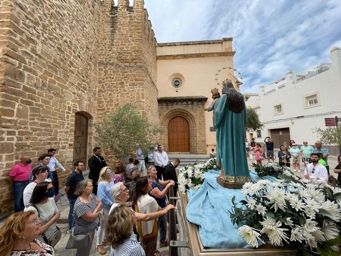 La familia de las Hijas de María Auxiliadora, que este año conmemoran los 150 años de la creación de las Casas Salesianas y el 75 aniversario de la llegada de esta congregación a Rota, plantea este año, y tras dos años de espera de pandemia, una procesión especial. Por eso, en esta ocasión, no saldrá del colegio Nuestra Señora del Perpetuo Socorro como es habitual, sino desde la capilla de San Roque donde esta mañana ha llegado arropada por alumnos salesianos y antiguos alumnos que han portado varas y banderas y han completado un itinerario que ha partido desde el colegio de las Salesianas, ha pasado por el paseo marítimo de la Costilla hasta llegar al Castillo de Luna, sede del  colegio de las Hijas de María Auxiliadora, para, finalmente, entrar en la capilla donde preside el altar.