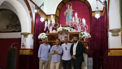 [Img #168390]Antiguos alumnos de las Salesianas y devotos han podido cargar a la virgen que iba en parihuela y guiada por el grupo de capataces que dirige Manuel Pizones Córdoba.