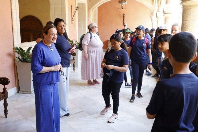 Esta mañana, la teniente de alcalde delegada de Cultura, Encarna Niño, ha recibido a este grupo de alumnos y alumnas y a su profesora a su llegada al Castillo de Luna, y ha coordinado en colaboración con la delegada de Turismo, Esther García, algunas de las principales actividades y encuentros en los que este grupo de alumnos y profesores participan en estos días.