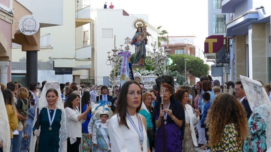 María Auxiliadora ha recorrido las calles de la localidad guiada por su capataz Víctor José Diego, acompañada por los sones de la banda de música de la Hermandad del Nazareno de Rota que se ha encargado de los acordes musicales.