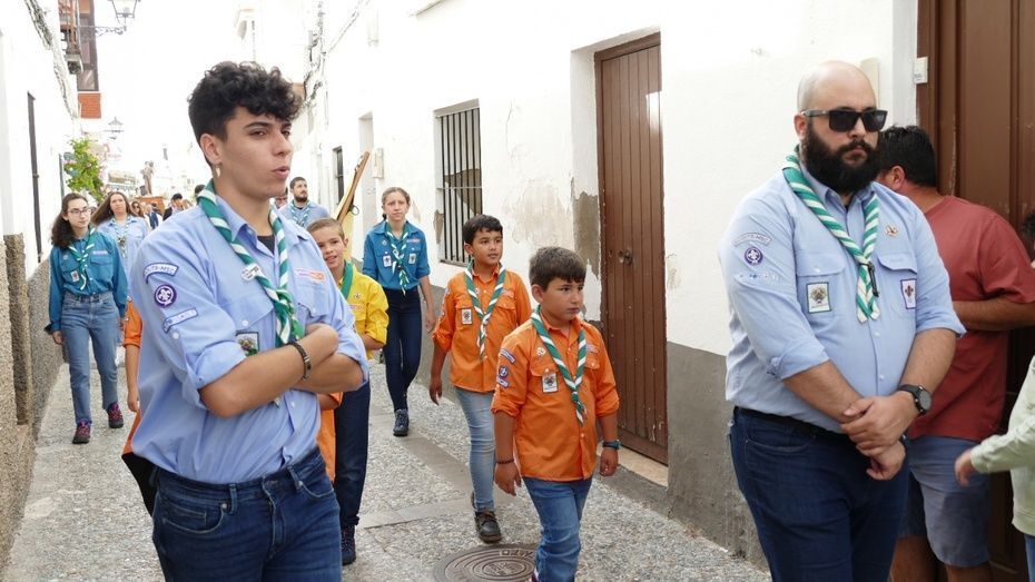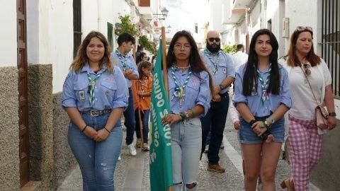 Para la familia salesiana el 24 de mayo es un día especial y así se ha dejado notar esta tarde por las calles de la localidad con una salida procesional muy esperada donde María Auxiliadora ha brillado arropada por un amplio cortejo y mucho púbico en la calle. Y es que esta es una jornada fija en las festividades que se celebran en la villa y la comunidad educativa del colegio Nuestra Señora del Rosario se vuelca cada año, en esta ocasión, incluso con más ganas ya que por la pandemia la virgen no procesionaba desde 2019 y eso ha hecho que la espera haya multiplicado el deseo de verla procesionar.