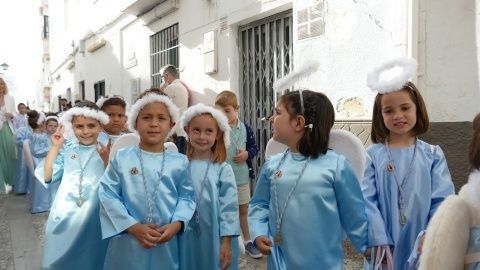 Momentos especiales se han vivido en la plaza de Andalucía, llena de público, donde los seises que preceden a la virgen, han bailado su coreografía ante la atenta mirada de muchos ciudadanos que han aplaudido el buen hacer de los pequeños. Y es que como cada 24 de mayo, las calles de Rota se llenan de alegría, de gente joven y de fervor salesiano.