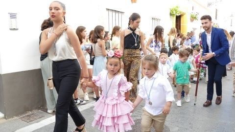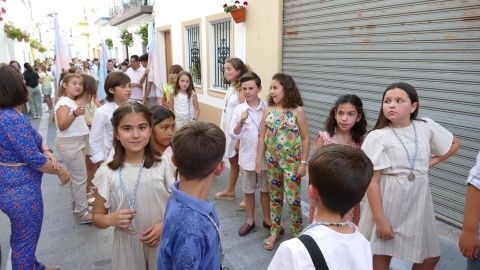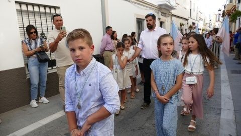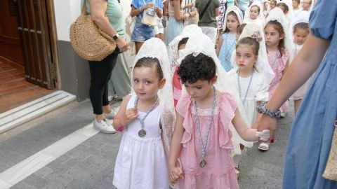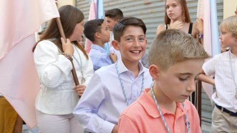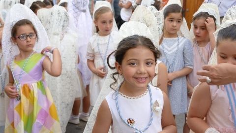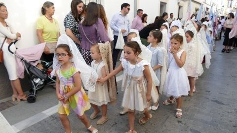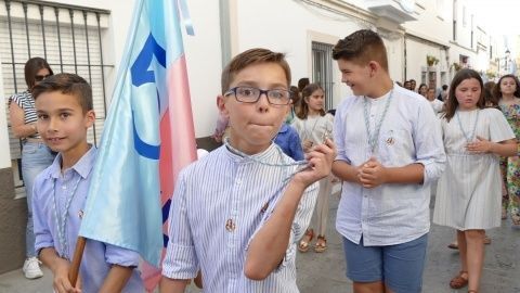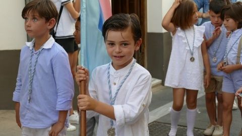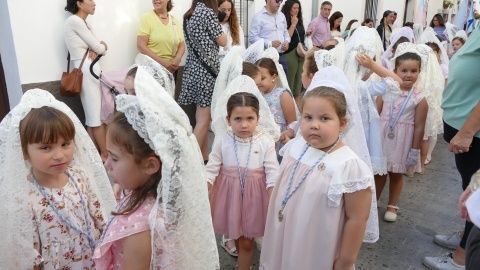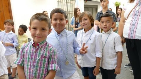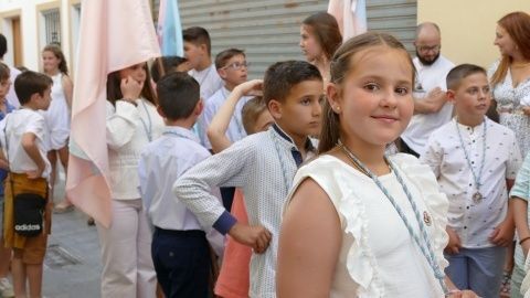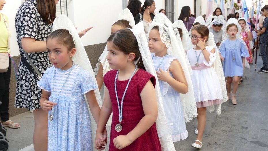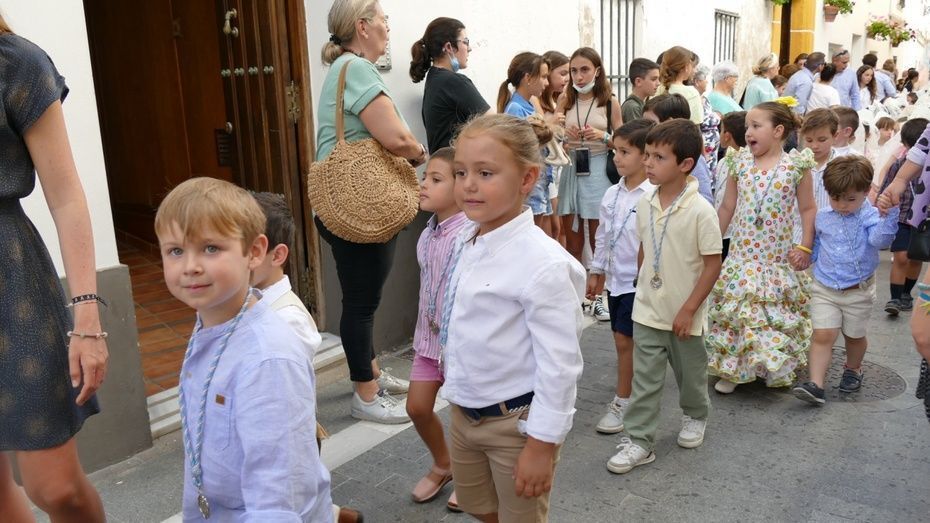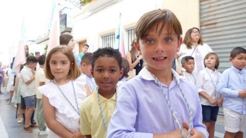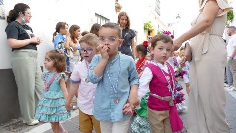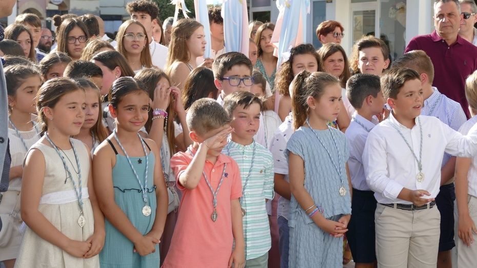 Como suele ser habitual, los más pequeños dan la nota con su espontaneidad, difícil de controlar en un cortejo que andaba algo revuelto con los alumnos de Infantil, y que a medida que iba avanzando hasta la virgen se iba corrigiendo.