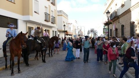 Pasadas las 9 de la mañana, la Hermandad de Nuestra Señora del Rocío de Rota ha empezado a andar los primeros metros de su camino hacia la aldea almonteña para vivir un Rocío 2022 muy esperado. Solo había que ver las caras de los hermanos rocieros para saber que dos años han sido una larga espera y que por fin, están a las puertas de vivir momentos especiales de fe, convivencia y también de cante y baile.