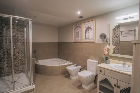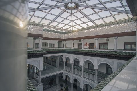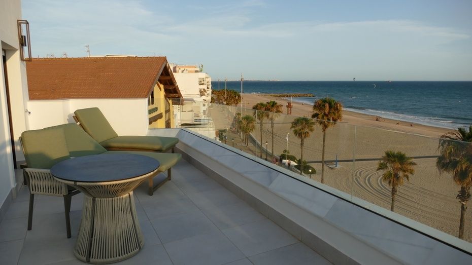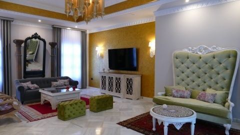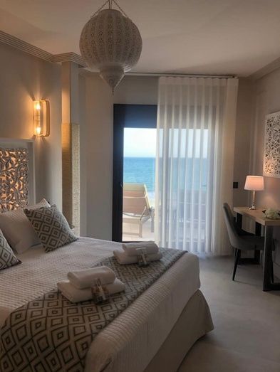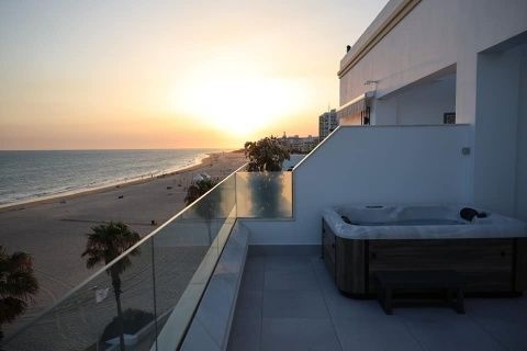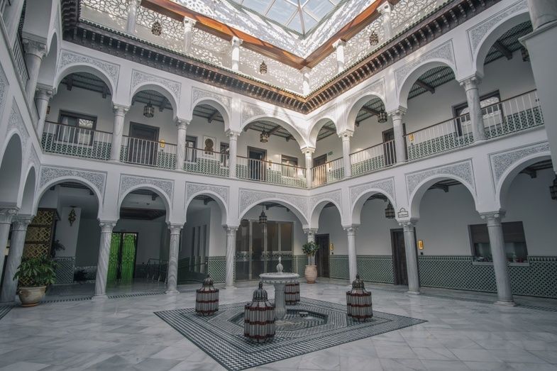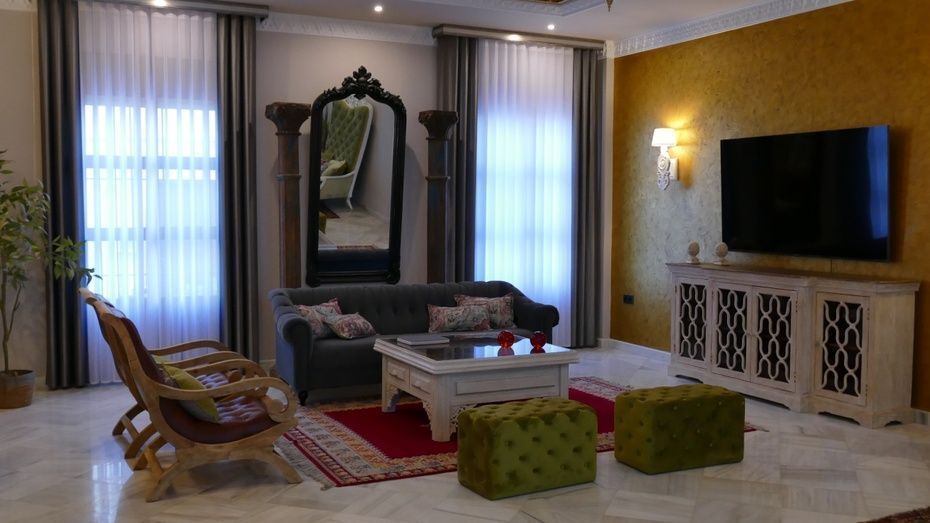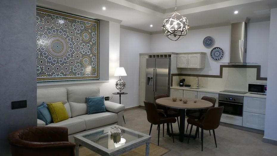 Cinco plantas alzadas sobre el antiguo balneario de Rota que reflejan en cada detalle la artesanía marroquí, de hecho, está inspirado en el palacio de La Mamounia, uno de los lugares más emblemáticos de Marrakech (Marruecos), ciudad que hace años tiene enamorado al empresario roteño y a la que ha viajado en multitud de ocasiones. Tanto es así, que muchos de los materiales, detalles y decoración que lucen entre sus paredes, han sido elaborados exclusivamente por artesanos locales marroquíes para estos apartamentos que miran de frente a la playa de la Costilla.