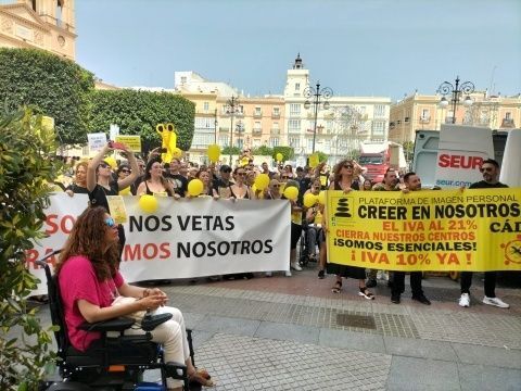 La Plataforma de Imagen Personal "Creer en nosotros", que convoca esta manifestación enmarcada en su campaña "La rebelión de las tijeras rota", denuncia los "vetos" que el PSOE ha puesto a los intentos que se han dado de bajar el IVA con propuestas de otros partidos tanto en el Congreso de los Diputados como en el Senado. "Ahora votamos nosotros", han dicho en clara referencia a la campaña electoral en la que está inmersa Andalucía hasta el próximo domingo, 19 de junio. "El sector va a hacerse visible" para denunciar "el ninguneo permanente del PSOE" a la restitución del IVA reducido al sector.
