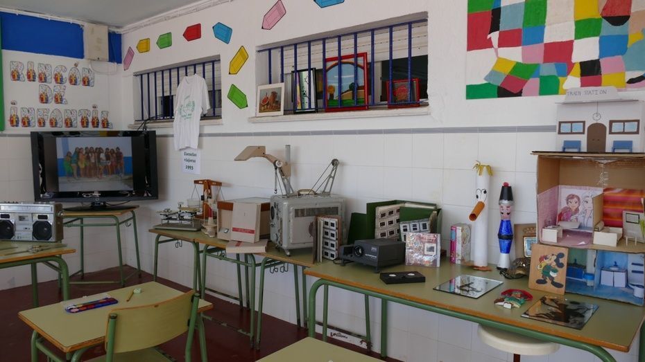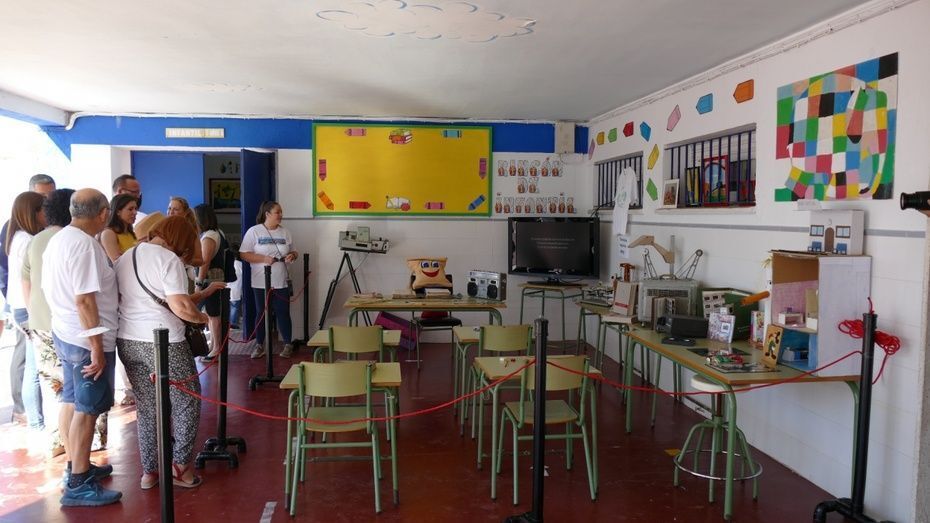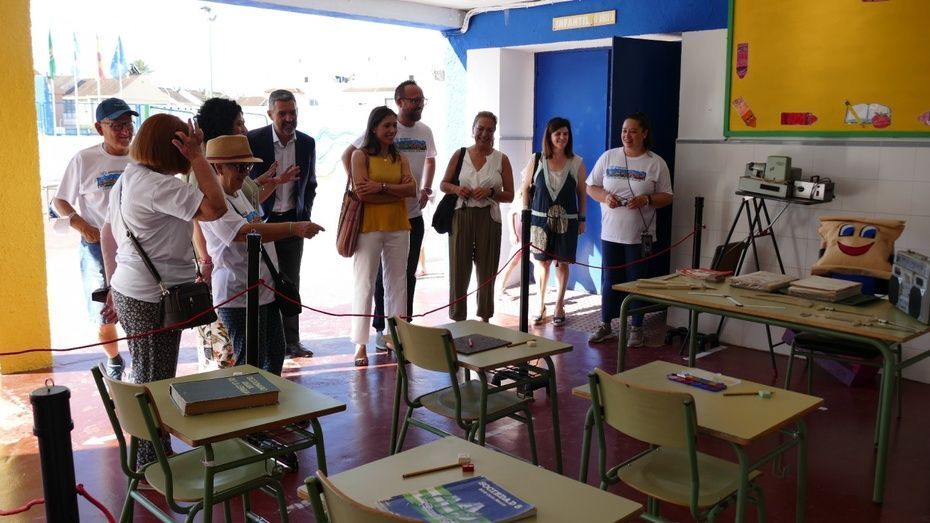 Por último, y ya con los niños en el colegio para disfrutar de un día festivo con una gymkhana y otras actividades, el alcalde y los concejales de la Corporación municipal presentes han podido hacer una visita a la exposición que se ha organizado por estos 50 años del Pedro Antonio de Alarcón donde se pueden ver fotografías de promociones antiguas, material escolar que se usaba antes como proyectores, diapositivas, radio cassette, balanzas, libros de texto de EGB, etc. Una muestra que está en el porche del patio y que esta tarde quedará abierta a las familias ya que este colegio celebra hoy su fiesta de fin de curso. La exposición "Recuerda tu cole", "Viaje por nuestro medio siglo", "Vídeo 50 años de recuerdos", la exposición "El disco de mi escuela", el huerto escolar y el proyecto "Safari Alarcón" son parte del material recopilatorio que han podido reunir en estos meses con ayuda de ex alumnos y profesores.