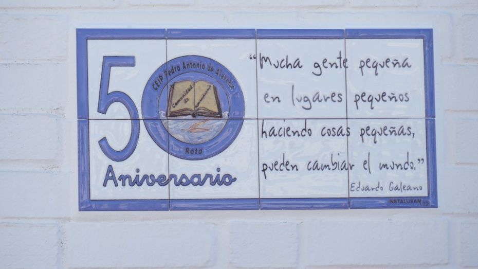 El colegio Pedro Antonio de Alarcón de Rota está de cumpleaños y en este curso escolar cumple 50 años desde que abriera sus puertas en la localidad para ser un punto de encuentro y aprendizaje para los niños roteños. Cinco décadas han pasado desde su inauguración y este viernes, se ha querido recordar con el descubrimiento de un azulejo conmemorativo en la fachada del edificio.