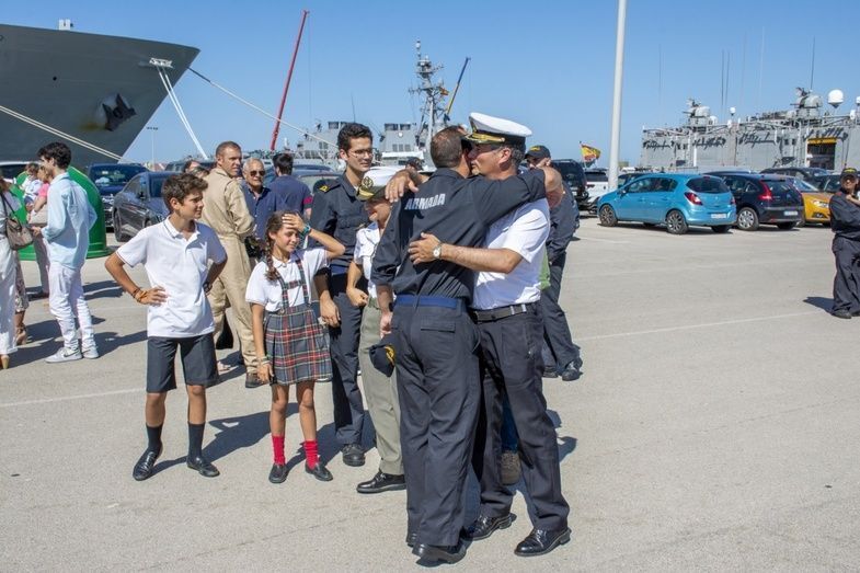 Familiares de la tripulación han dicho adiós a pie de muelle a sus seres queridos a los que no volverán a ver hasta octubre, repitiéndose las estampas propias de salidas de este tipo, con abrazos, besos, alguna lágrima y deseos de que el tiempo pase cuanto antes para reencontrarse.