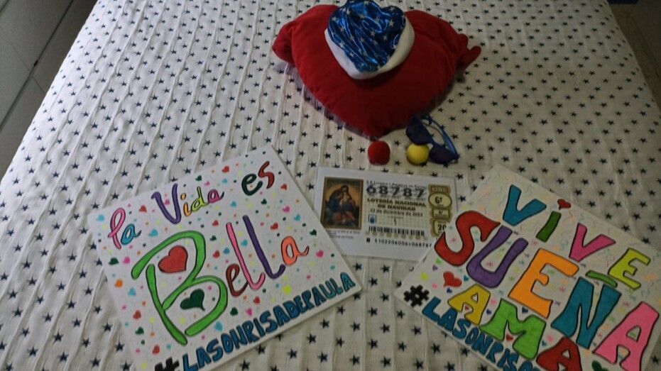 Desde hoy, se está vendiendo el número de la Lotería de Navidad 68.787 al precio de 22 euros. De ese dinero, dos euros por décimo será el beneficio que se destinará para la compra de bonos de masajes en una clínica de Rota para atender a la pequeña Paula y buscar a un especialista que ayude a los padres a normalizar la vida de la pequeña mientras no haya otra solución.