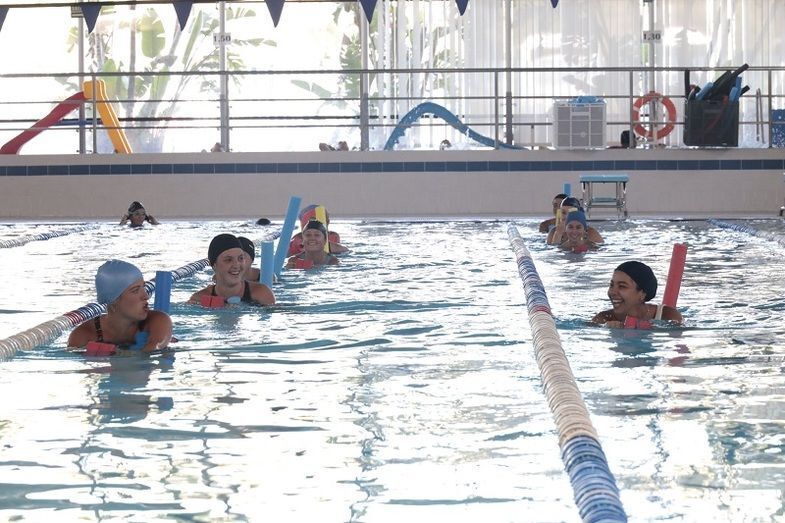 El objetivo de la actividad era mostrar las instalaciones deportivas y realizar una actividad de grupo tutorizada por uno de los monitores que cuenta en plantilla la piscina municipal. En la visita no pudo faltar la presencia de la delegada de Fiestas, Laura Almisas, y algunos de los miembros del jurado que deberán seleccionar a la dama mayor entre las 17 jóvenes que se han presentado con representantes de peñas y entidades locales para ser damas del Rosario.