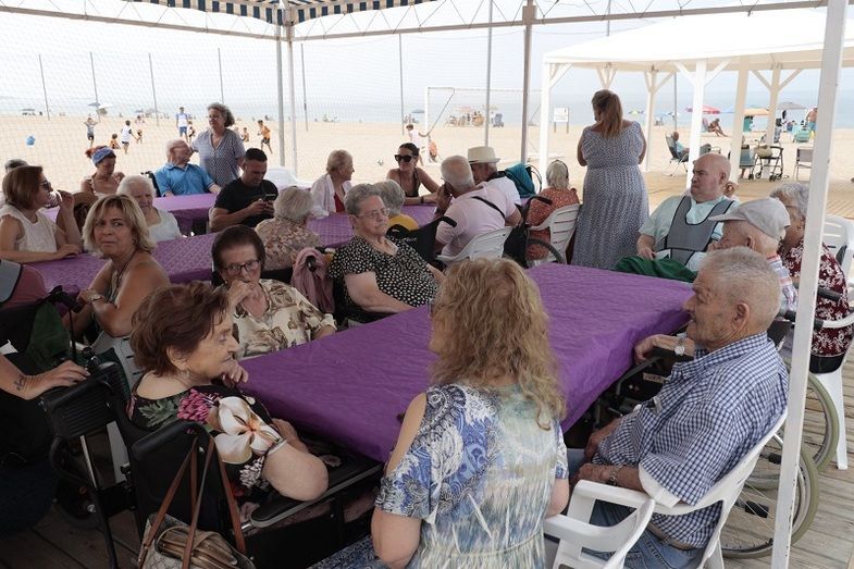 Esta mañana los mayores de la residencia han paseado por la playa de la Costilla con un desayuno final