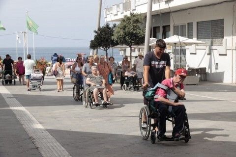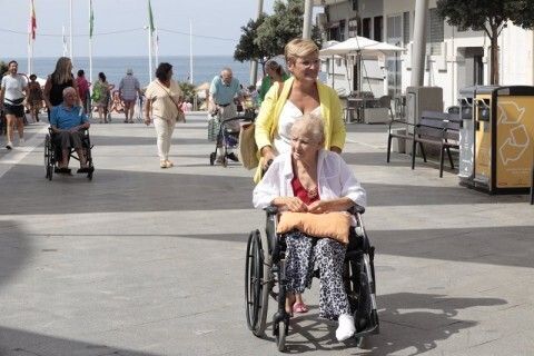 Los mayores de la residencia de ancianos de Rota han podido disfrutar hoy de una agradable mañana, saliendo de la rutina, en la que han paseado por algunas zonas de la localidad.
