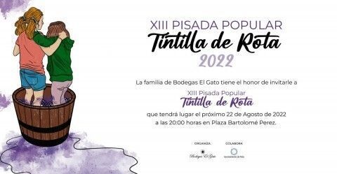 El próximo lunes, 22 de agosto, se celebrará la tradicional pisada popular que organiza la familia de Bodegas El Gato a las 20.00 horas en la plaza Bartolomé Pérez, y en colaboración del Ayuntamiento de Rota. En esta ocasión, la duodécima edición de este evento será dedicada a “los más pequeños de la casa”, como así han querido reflejar desde la familia de Bodegas El Gato en su cartel de este año.