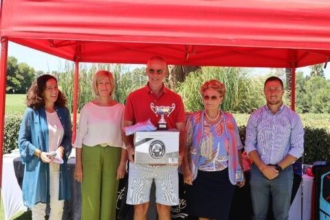El delegado municipal de Deportes, José Antonio Medina y la delegada de Promoción Turística, Esther García Fuentes, participaron en la entrega de premios de este veterano trofeo, junto con la presidenta el Club de Golf de Costa Ballena, Beatriz de Orleáns-Borbón, y Lola Ruiz, directora de Costa Ballena Club de Golf.