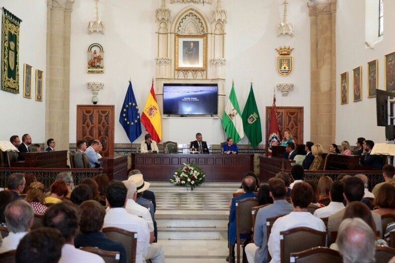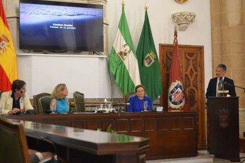 Desde hoy, una de las grandes figuras de la literatura española de este siglo y el anterior, es honrada con la mayor distinción que el Ayuntamiento de Rota puede ofrecer. Almudena Grandes ha sido distinguida como Hija Adoptiva de Rota tras un acto institucional que dio comienzo a las 12.00 horas en el salón capitular del Palacio Municipal Castillo Luna ante una gran expectación y con representación del Gobierno de España, a través de la ministra de Asuntos Económicos y Transición Ecológica, Nadia Calviño. La también vicepresidenta primera del Gobierno atendió a los medios minutos antes del comienzo del acto y fue partícipe directa del mismo.