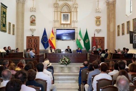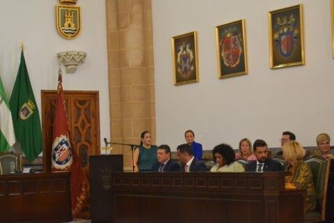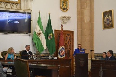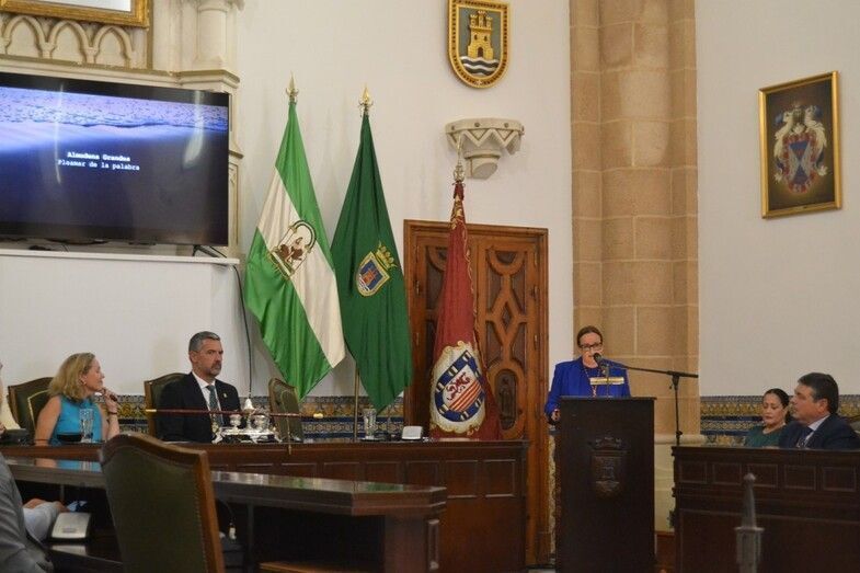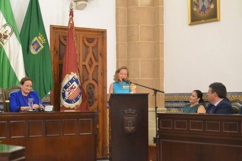 El inicio del acto de nombramiento de Hija Adoptiva empezaría con la lectura del correspondiente acta y memorias de la persona a cargo de la delega de Cultura, Encarna Niño, tras ser previamente presentada por la conductora del evento, Eva Cobos.