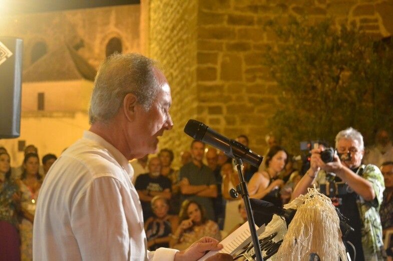 Además, ante la presencia de Felipe Benítez Reyes, el presidente del Foro Plural Torre de la Merced hizo entrega al poeta roteño de una torre en miniatura simbolizando el logo de la asociación cultural. Al finalizar el punto más lento de un acto coordinado a la perfección, la entrega de obsequios, tomó la palabra Luis García Montero. “Nos sentimos parte de Rota” decía el poeta tras agradecer este mes de agosto lleno de homenajes a Almudena Grandes. Habló de que esta cerámica era “una declaración del sentido de pertenencia a Rota, a nuestro territorio de la felicidad”, además incluyó que en este municipio Almudena Grandes era suya: “con Madrid tuvo una ciudad, y con Rota tuvo un pueblo”. Luis García Montero finalizó su intervención con la lectura de dos poemas: “playa de Rota” y “confesiones”. Al terminar la lectura de esa declaración de amor con la que mostró que él seguirá esperándola, el público arrancó un sentido y cálido aplauso de varios minutos que obligaron al poeta, una vez sentado, volver a levantarse para recoger tantas muestras de cariño.