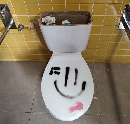 Espejos rotos, pintadas en paredes, en el inodoro o puertas,  secador de manos también afectado e incluso manipulación del cuadro eléctrico ha sido el resultado de la actuación de uno o más vándalos que no se sabe muy bien con qué objetivo, se han dedicado a destrozar lo que es de todos.