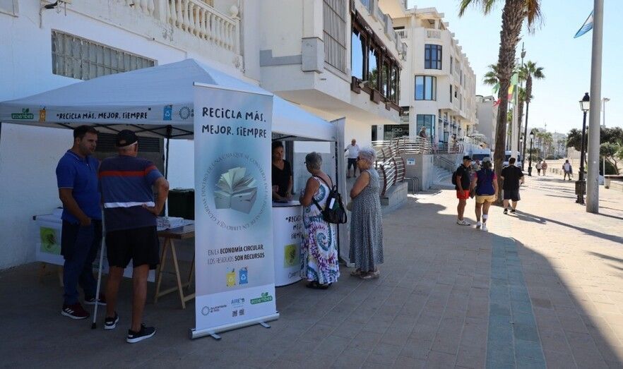 El paseo marítimo de la Costilla está siendo este martes el punto desde el que el Ayuntamiento de Rota y Ecoembes intentan seguir concienciando a la ciudadanía de la importancia de reciclar.