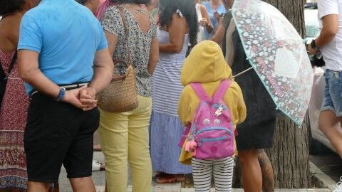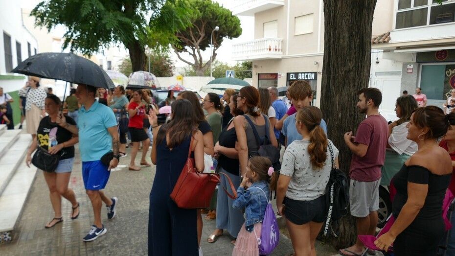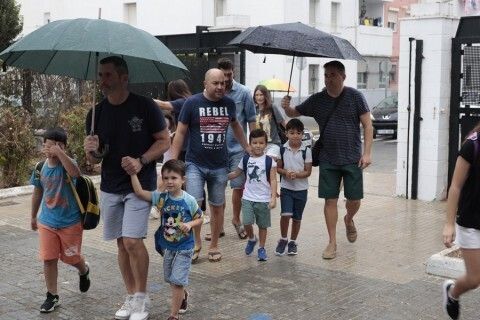 Varias gotas de lluvia, que ya se preveían a lo largo de la mañana, se han dejado notar minutos antes de las doce del mediodía, con lo que la entrada en los centros educativos para los alumnos de Primaria ha sido algo más alborotada que de costumbre buscando un resguardo bajo árboles cercanos o voladas de balcones para protegerse de lo que no han sido más que unos goterones, pero que ha desatado algo más el griterío habitual de este primer día de clase.
