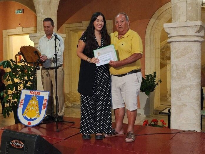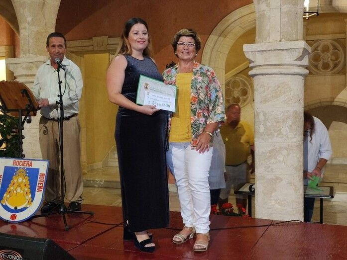 [Img #176301]La delegada de Cultura, Encarna Niño, estuvo junto al presidente de la Peña Rociera Roteña, Antonio Bejarano, en la entrega de premios en la que también participaron otros miembros de la entidad organizadora que agradeció, al igual que la concejal, la buena participación y el buen hacer de todos los cantantes, especialmente, de las mujeres que consiguieron destacar.
