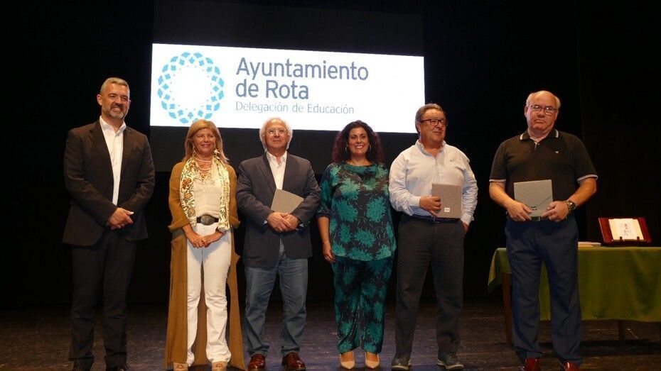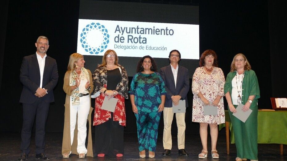Auxiliadora Expósito Guillén, Remedios Fernández Pozo, Ana María Gutiérrez Lluelma, Francisco Javier Rosado García, María Dolores Nieto Barea, María Joaquina Franco Serrano, María Dolores González Castro, Elvira Bidón González, Rafael Carlos Pérez Lanzarote, Miguel Rodríguez Macías, Juan Manuel Montes Delgado, Diego Garrido Gómez, Carlota María Villanueva Ruiz-Mateos, Ana María Oneto De Diego y María Aurora Torres Prieto han sido los homenajeados en este acto que han recogido de manos del alcalde de Rota, de la delegada territorial de Educación y de la delegada municipal de Educación el detalle que les recuerda el cariño y admiración de la sociedad por su trabajo.