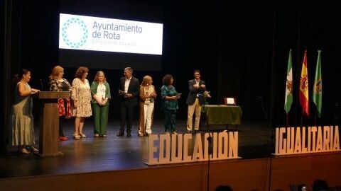 [Img #176653]Isabel Paredes, recién nombrada delegada de Educación de la Junta de Andalucía en Cádiz, mostró igualmente el aplauso a los docentes como pilares básicos de nuestras vidas donde muchas veces jugaron el papel de hacer al alumno fuerte ante la adversidad y en otras, le abrieron los ojos ante las oportunidades. Agradecida por estar invitada al acto, celebró que el Ayuntamiento de Rota pusiera el foco en este colectivo de personas que representan una figura tan destacada.