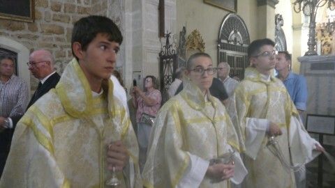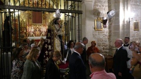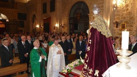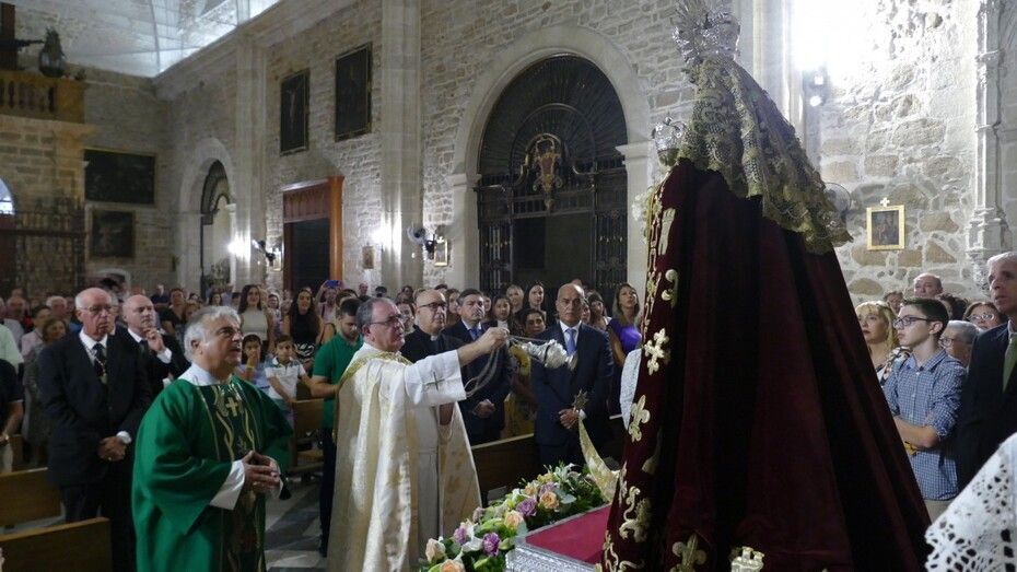 [Img #176928]Ha sido un traslado diferente al que se planteaba antes, donde la virgen iba montada en su paso, y eran los costaleros los que hacían las maniobras para colocarlo en el altar al son de los acordes de la banda municipal "Maestro Enrique Galán". Este año, al igual que el año pasado, se ha elegido una forma más sencilla, el traslado en peana y darle la oportunidad a miembros de la comunidad parroquial, encantados de participar en un momento tan solemne. Han estado guiados por el capataz Joaquín Bandarra que iba dando las órdenes oportunas para que la imagen se mantuviera erguida durante el breve recorrido. Al órgano de la iglesia estaba Severiano Alonso acompañando con los acordes musicales.