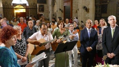 [Img #176936]Una vez terminado el traslado, el párroco de la O, José Arjona Gil ha iniciado el rezo de la salutación sabatina a Nuestra Señora del Rosario que ha terminado con la salve.  Además, la comunidad parroquial "Stella Maris" también le ha dedicado una canción que ha terminado con la foto de familia junto a la patrona como lo han hecho igualmente las 17 damas del Rosario que participan en estas fiestas patronales que se celebrarán del 30 de septiembre al 7 de octubre.
