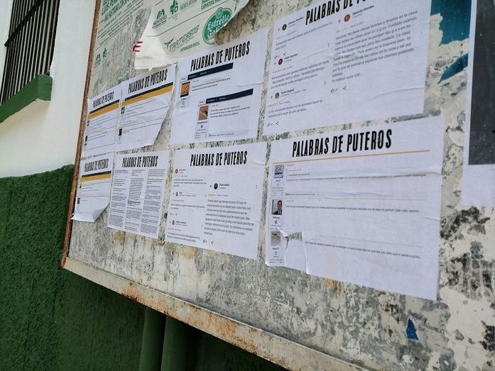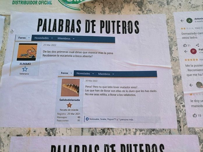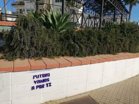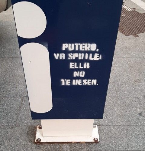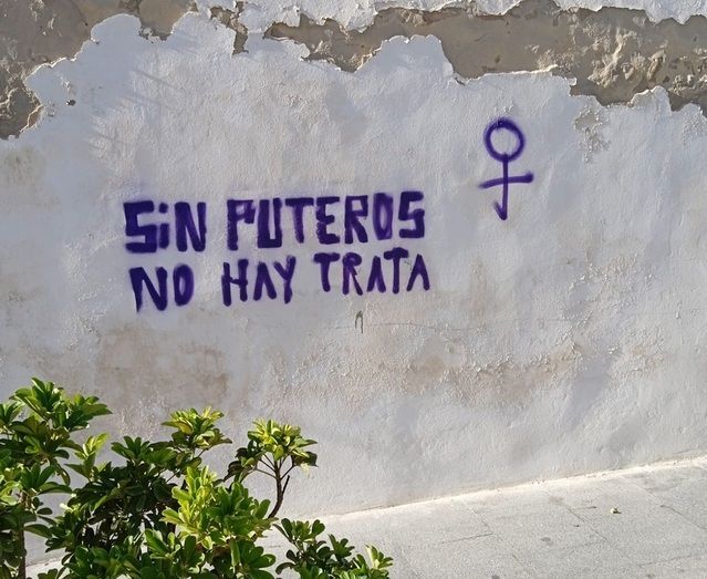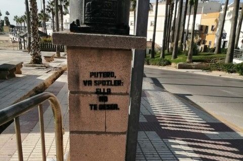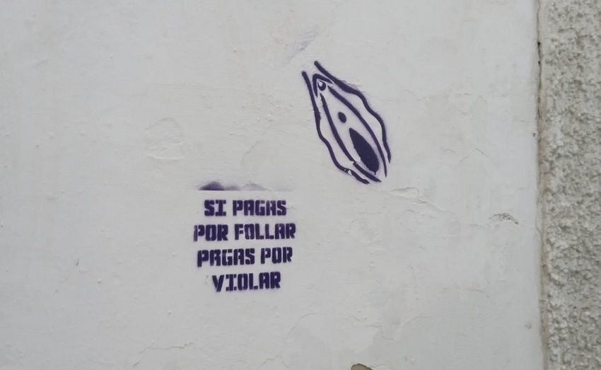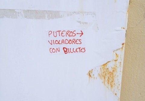 Paseo marítimo, macetones, carril bici, plazas, fachadas, contadores de luz, vallas de parques, señales informativas, etc., aparecían con frases como "putero violador", "putero vamos a por ti", "si pagas por follar, pagas por violar", "puteros violadores con billetes", "sin puteros no hay trata" o "putero va spoiler, ella no te desea",  entre otras.
